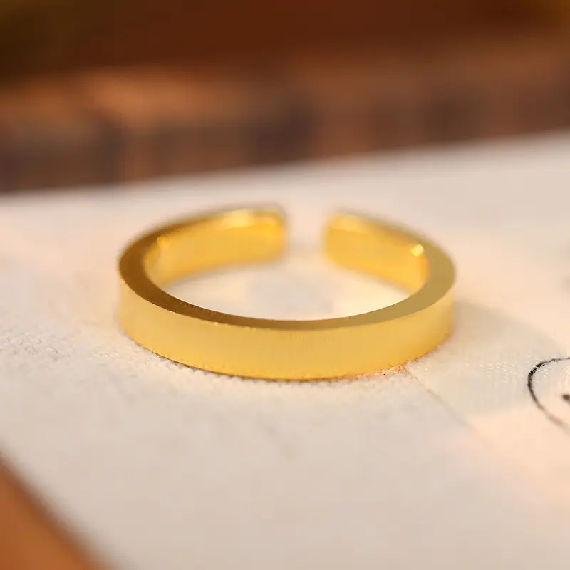 s925银古法传承情侣戒指经典素圈简约光面开口男女对戒指环