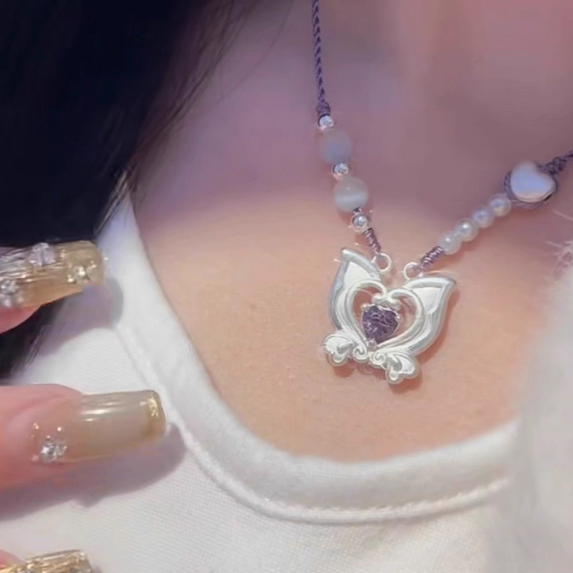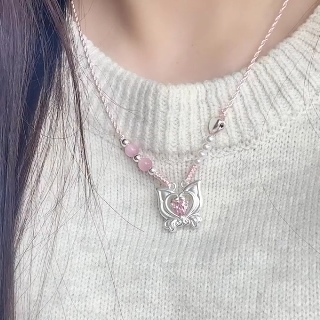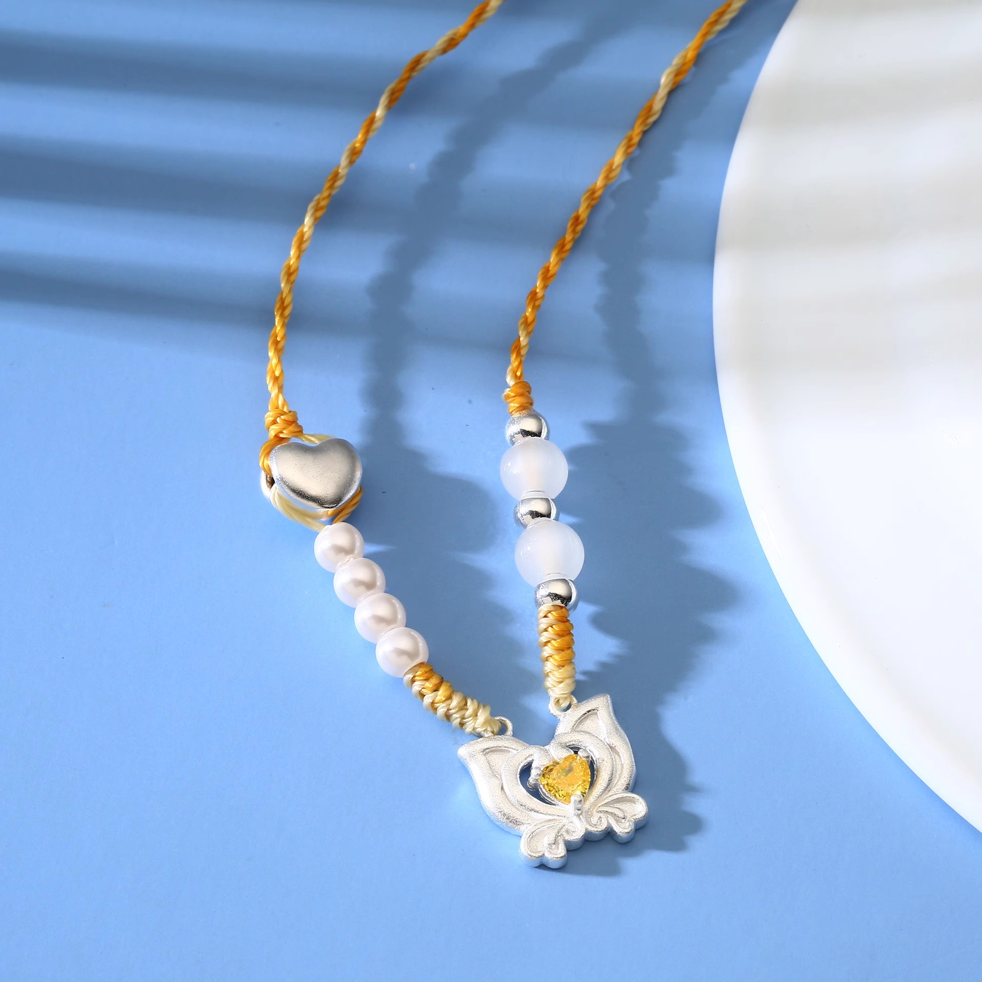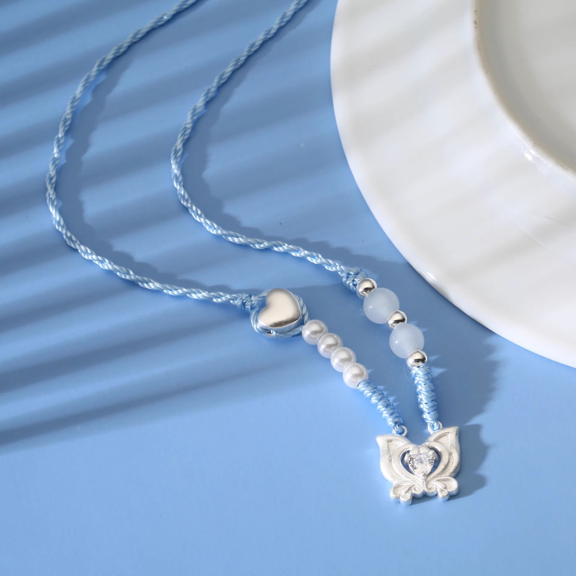 足银s999巴啦啦小魔仙晶石项链女纯银爱心编绳变身器少女心锁骨链