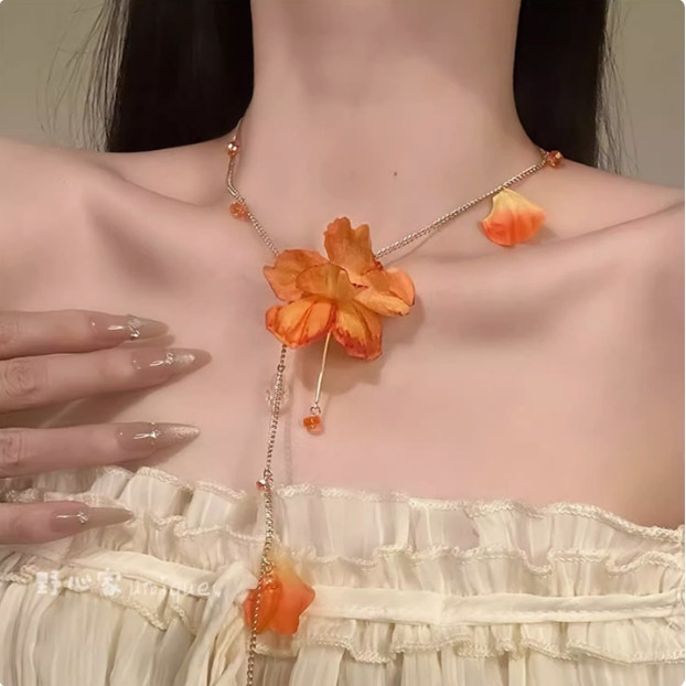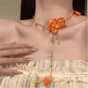 【橘洲落日】夏日氛围感橙色花朵项链甜美流苏锁骨链女choker颈链