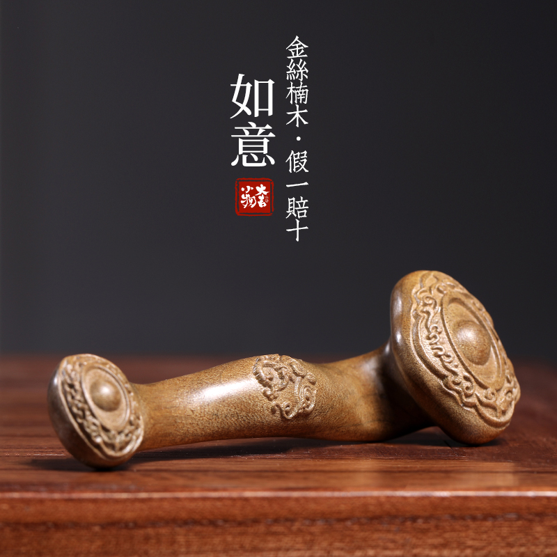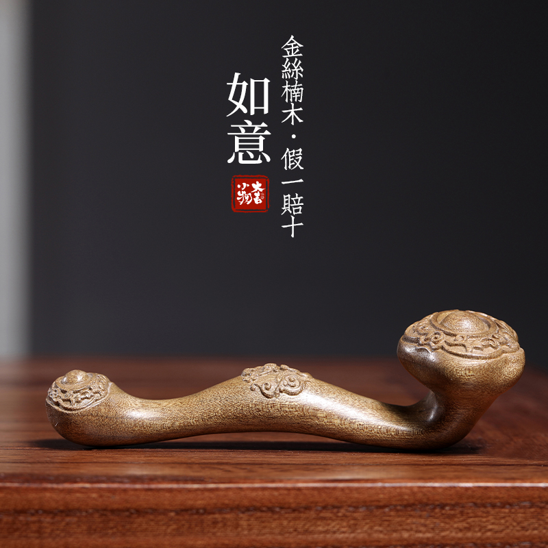 天然金丝楠木实木雕刻如意摆件文玩手把件吉祥如意摆件家居装饰品