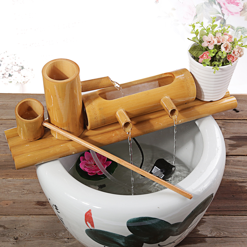竹子流水器石槽鱼缸鱼盆过滤器水景喷泉风轮N水车玄关摆件加湿增