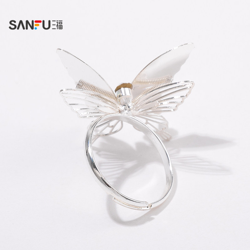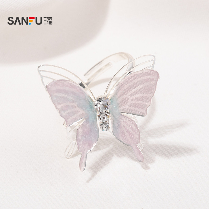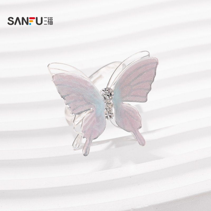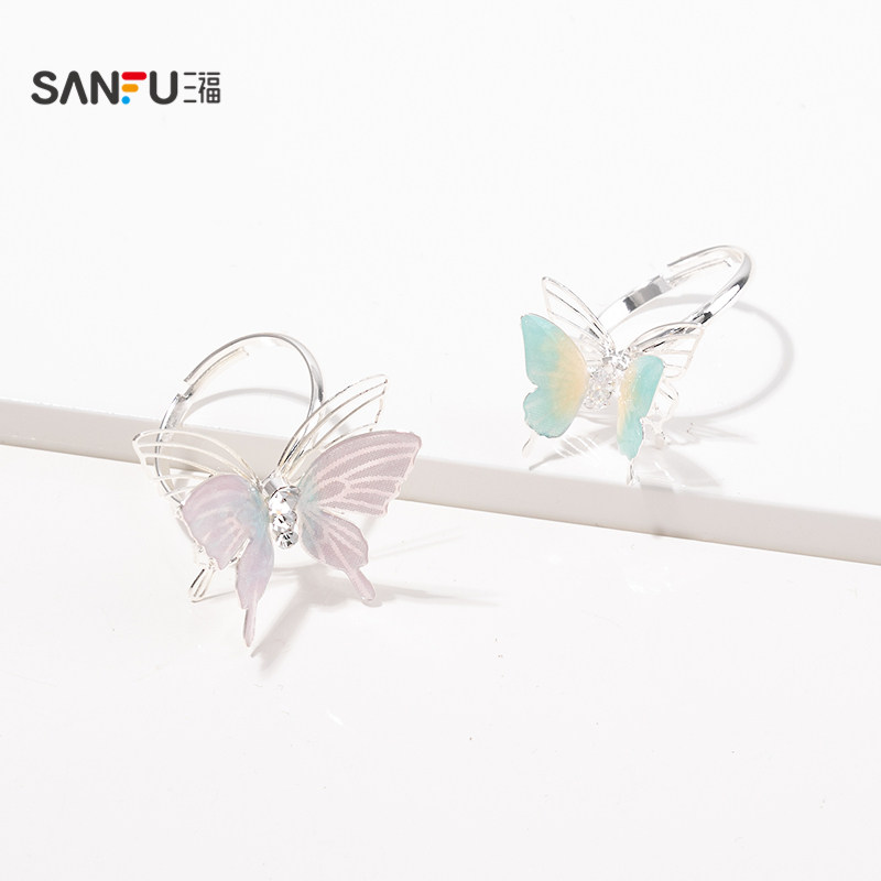 三福清新幻彩弹弹蝴蝶戒指单个 清新时尚首饰配饰指环843939