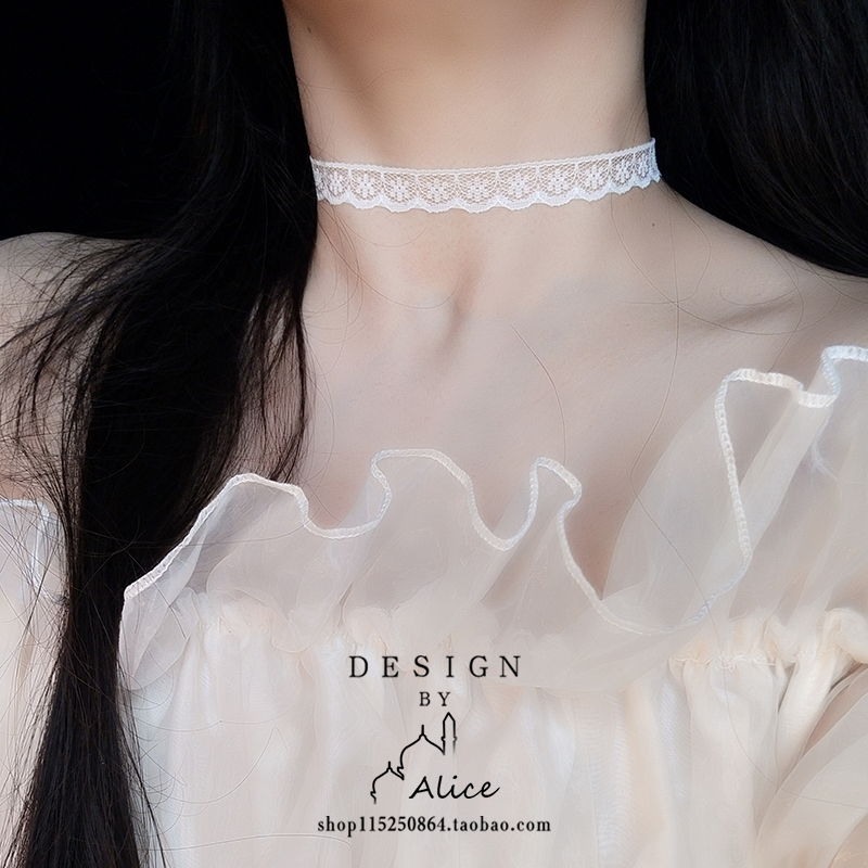 蕾丝玫瑰花小众轻奢项链气质黑色锁骨链项圈女颈带白色chocker