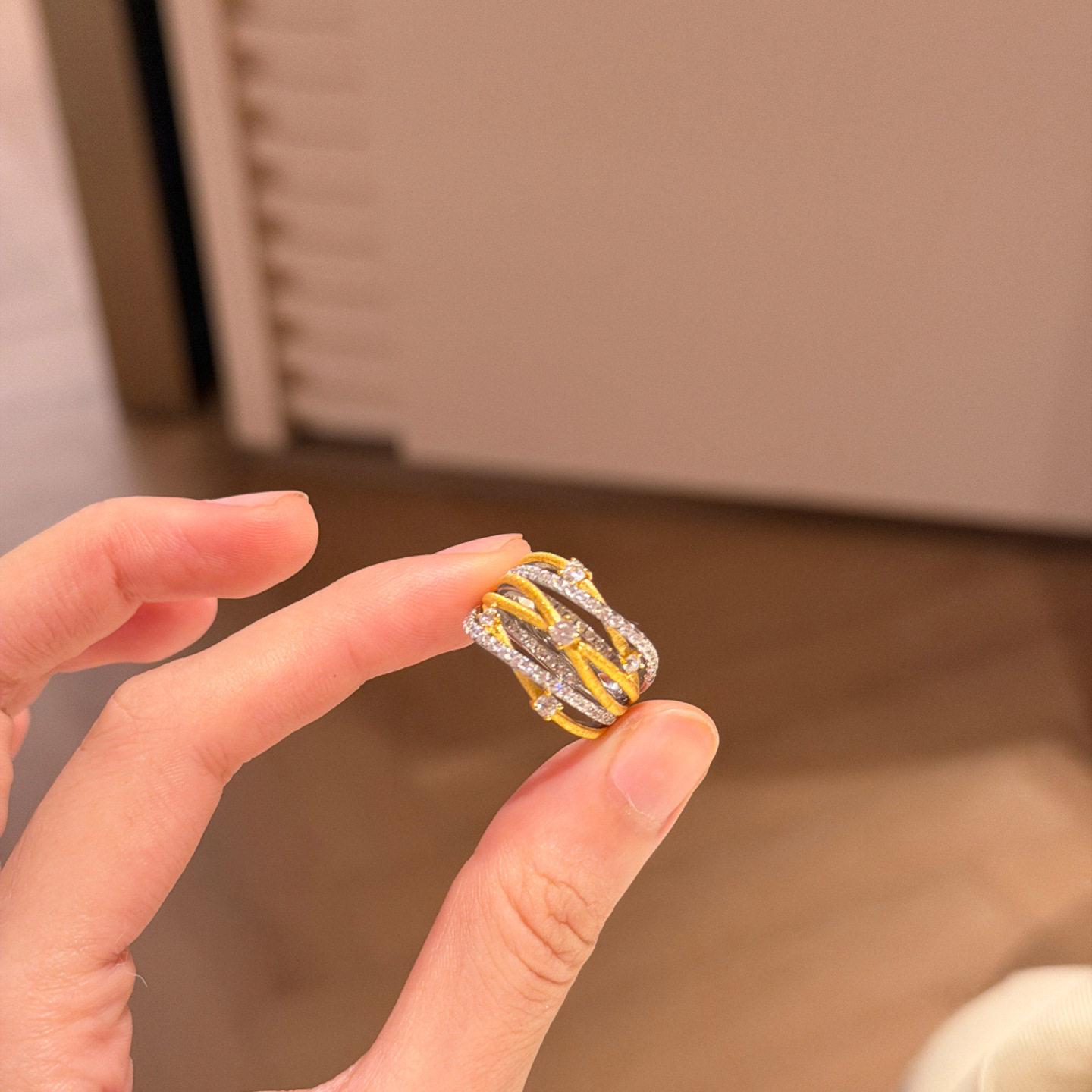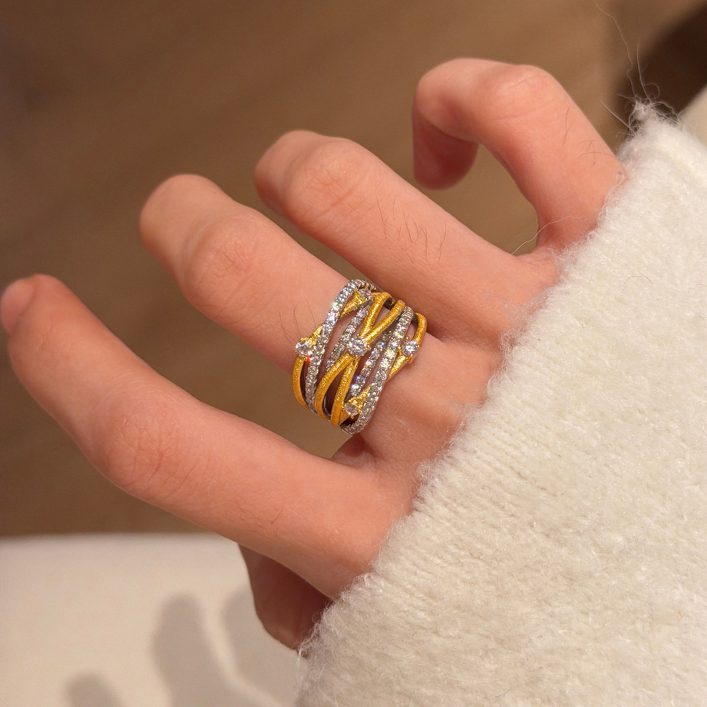 中古多层缠绕点钻拉丝宽版戒指轻奢百搭