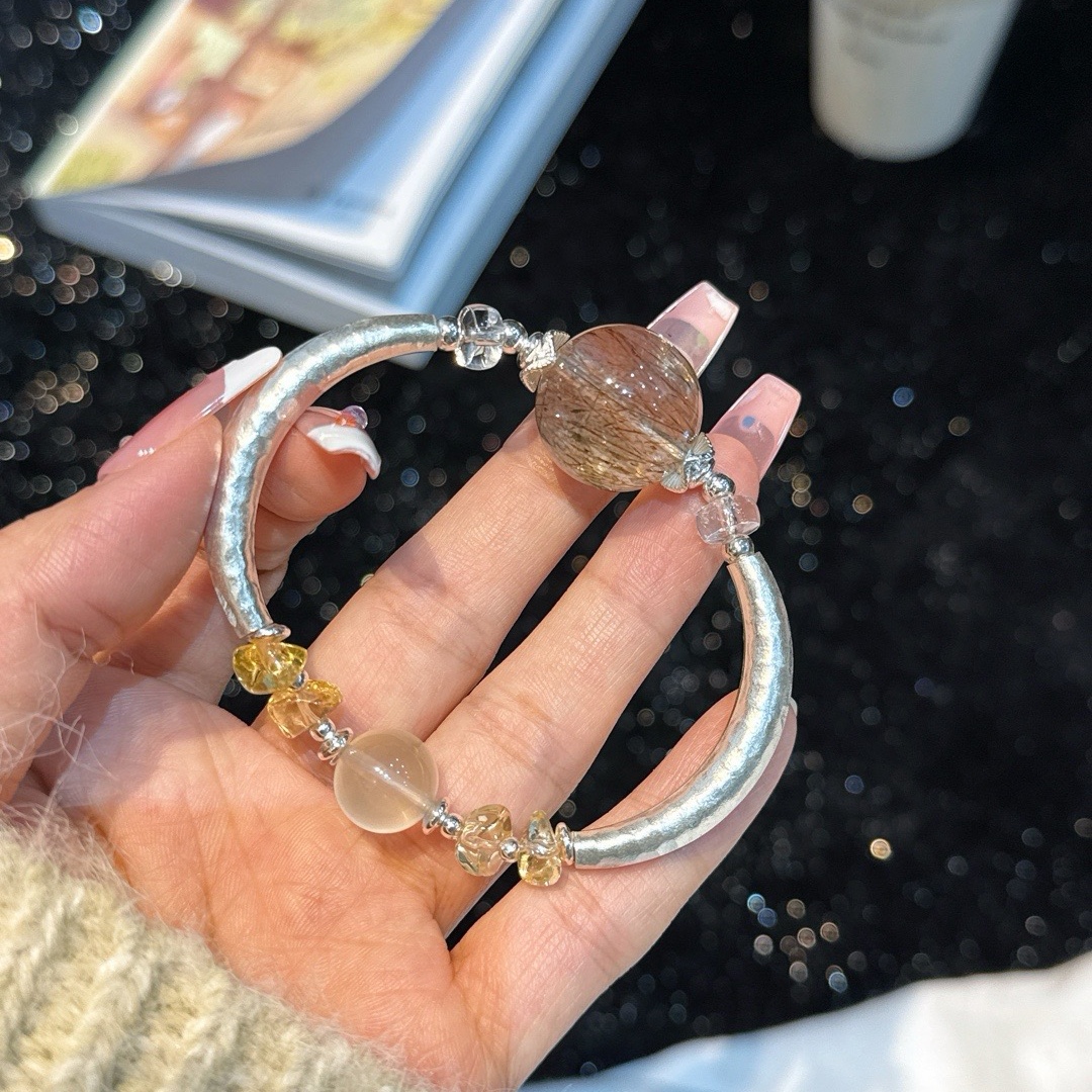 天然正品每个颜色都很美!天然水晶通体925银串珠手链ins清冷感