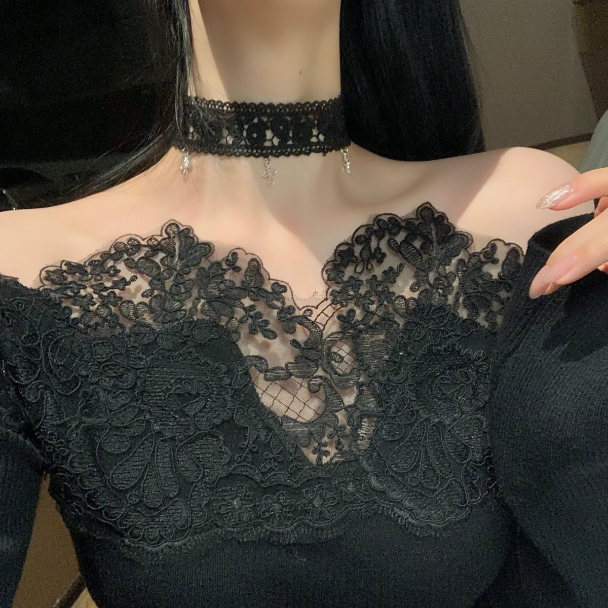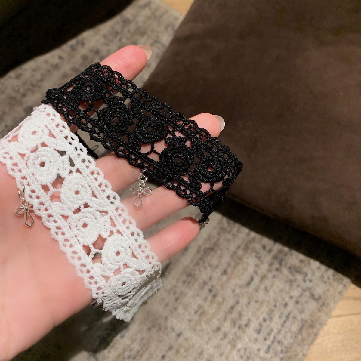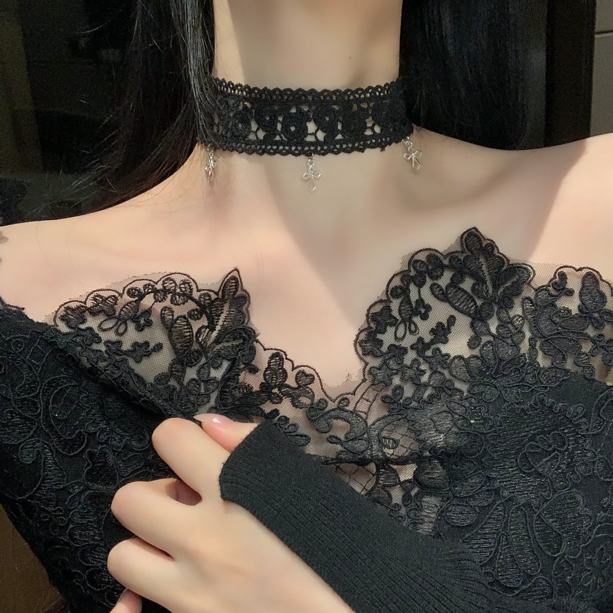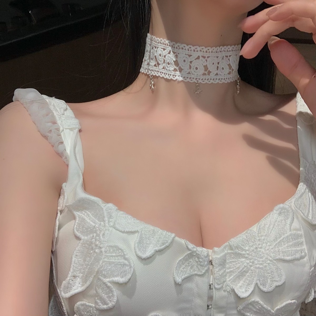 超仙白色蕾丝十字架锁骨颈链配饰高级感网红项链爆款蝴蝶结锁骨链