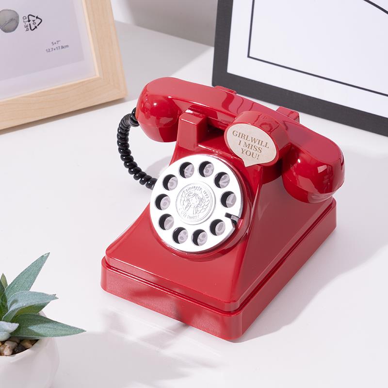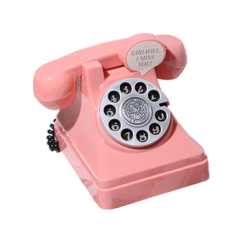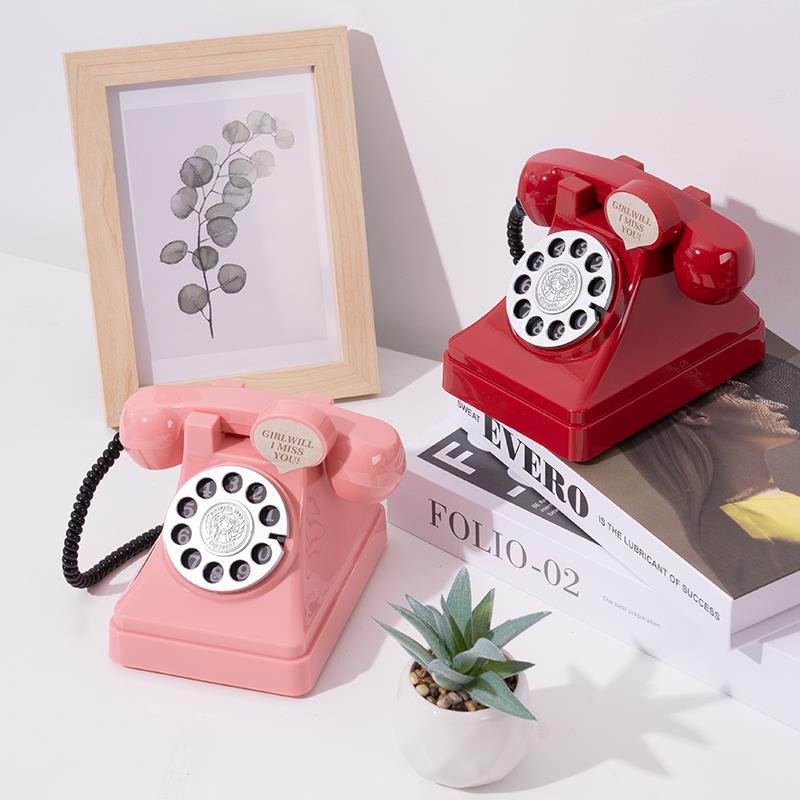 网红少女粉色电话机道具覆古拍照桌面存钱筒模型儿童写真装饰摆饰