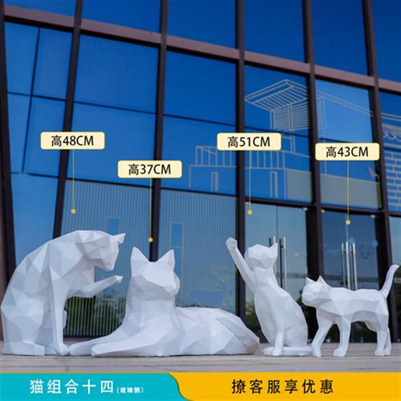 户外玻璃钢抽象几何猫雕塑园林景观小区草坪商场橱V窗动物装饰摆