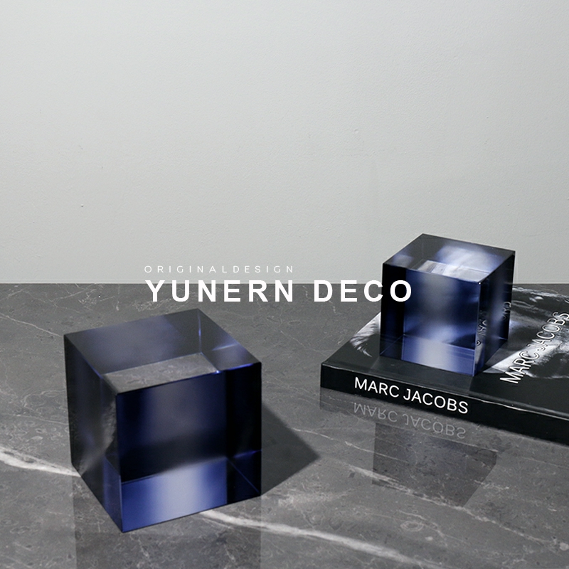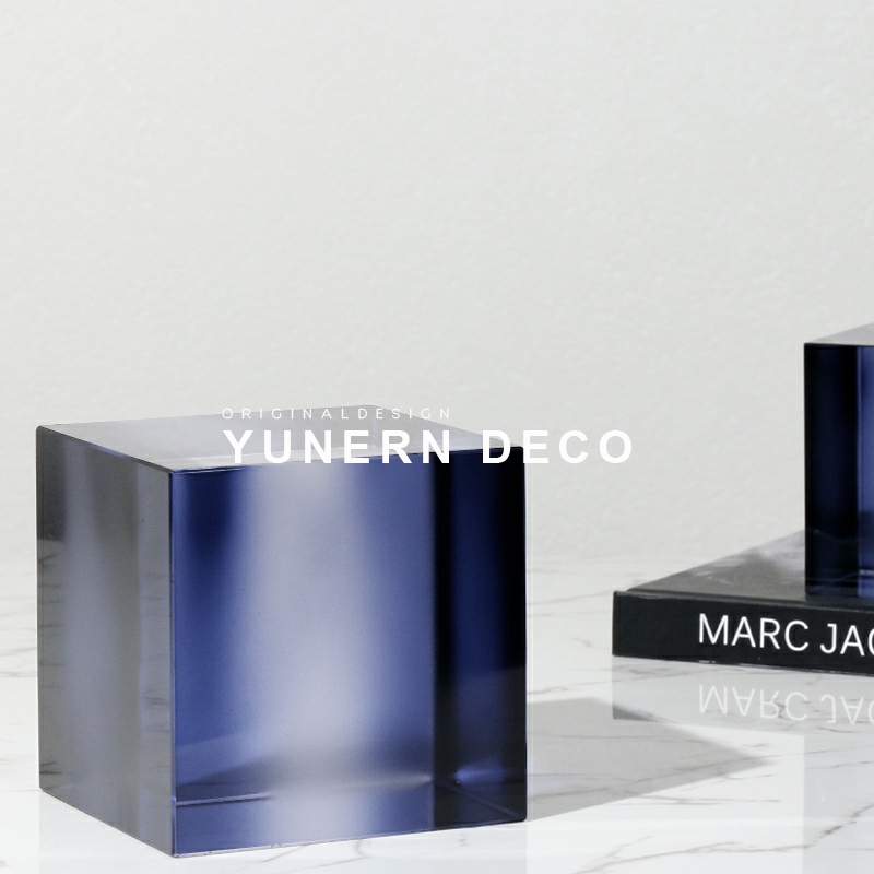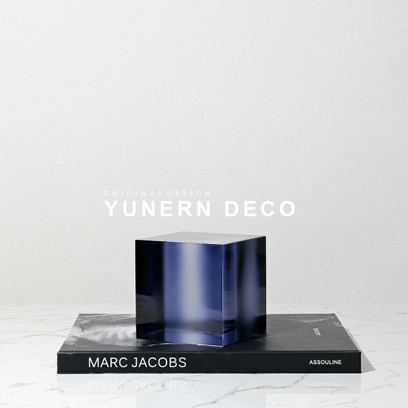 简约现代水晶创意艺术软装饰品蓝色书纸镇家居样板间样品屋展示中