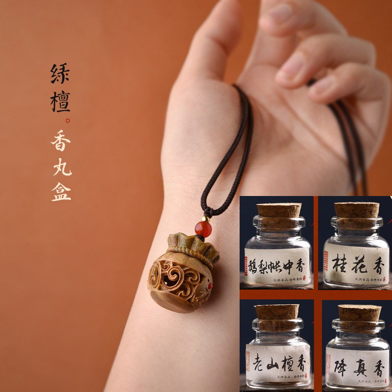 抖音直播绿檀木中式香囊球吊坠汽车挂件古风莲花款香囊盒镂空流苏