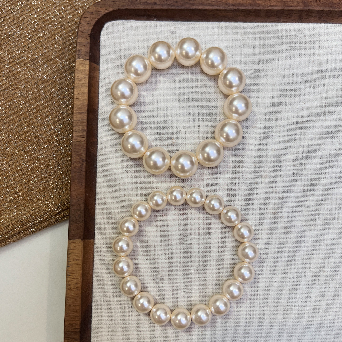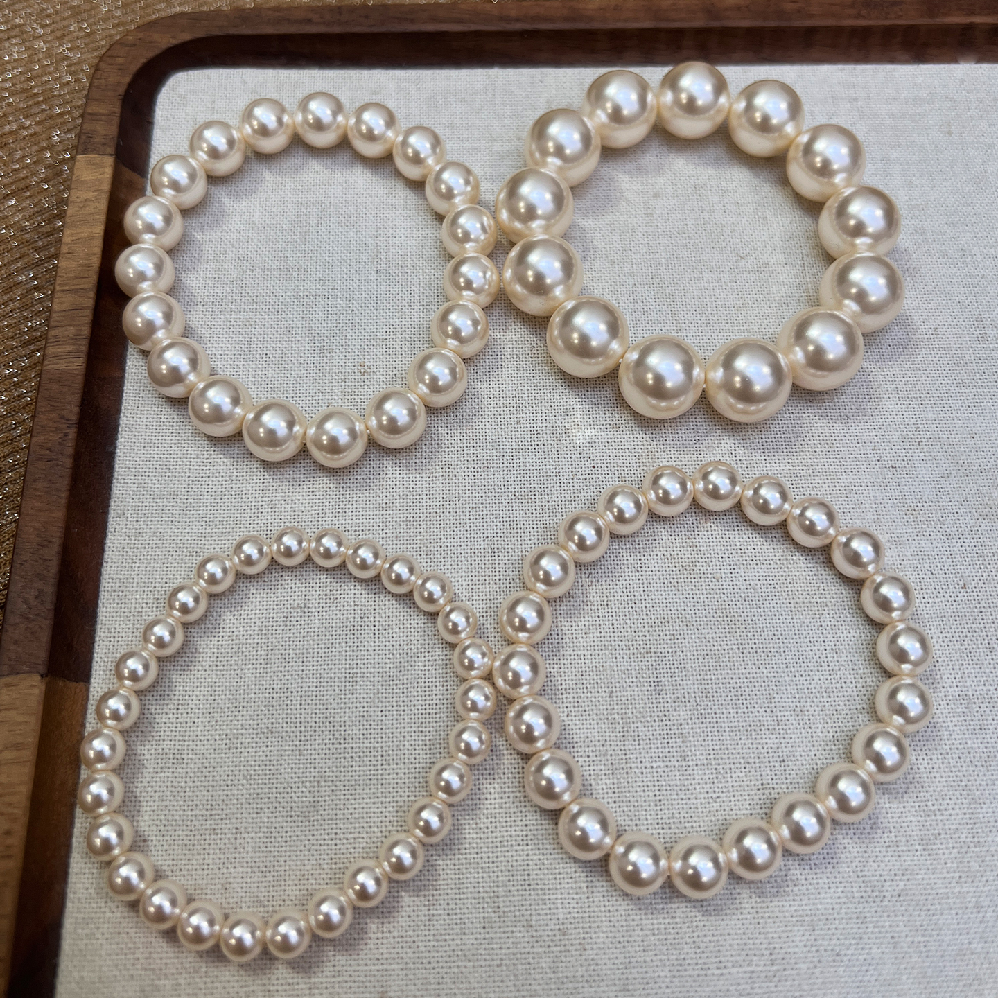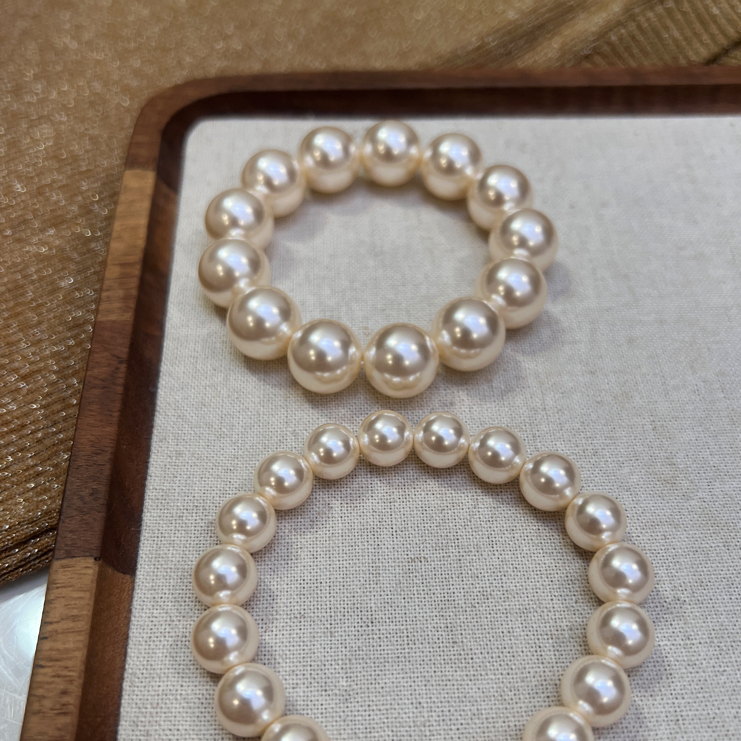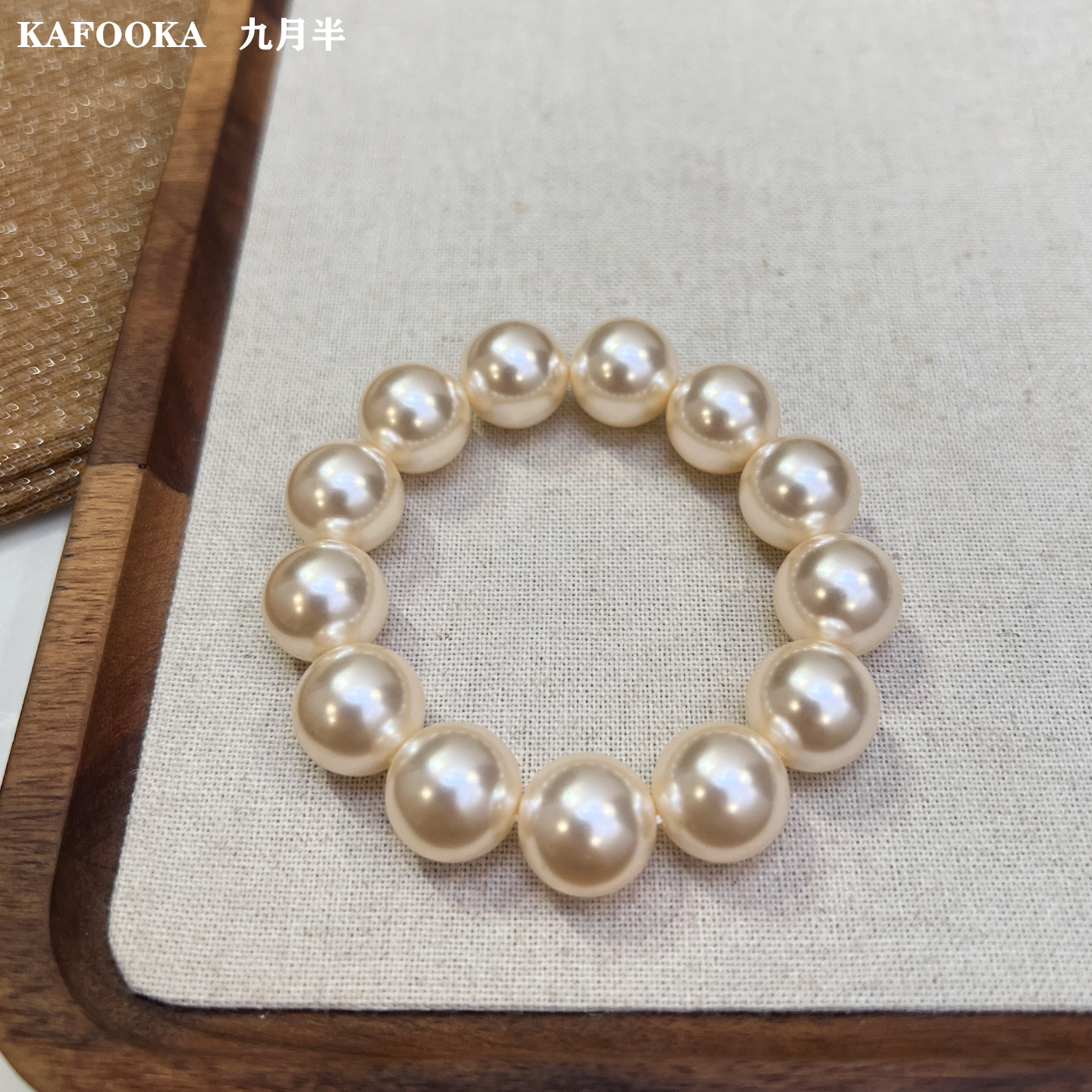 温柔暖光 施家香槟奶油白珍珠手链高档人造水晶珍珠弹力绳手串女