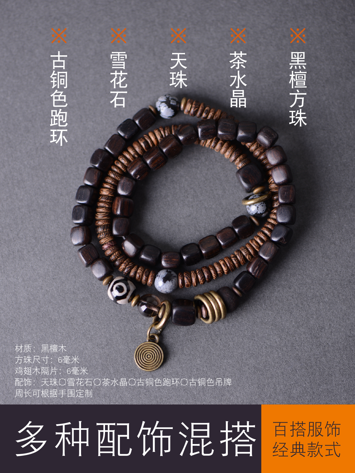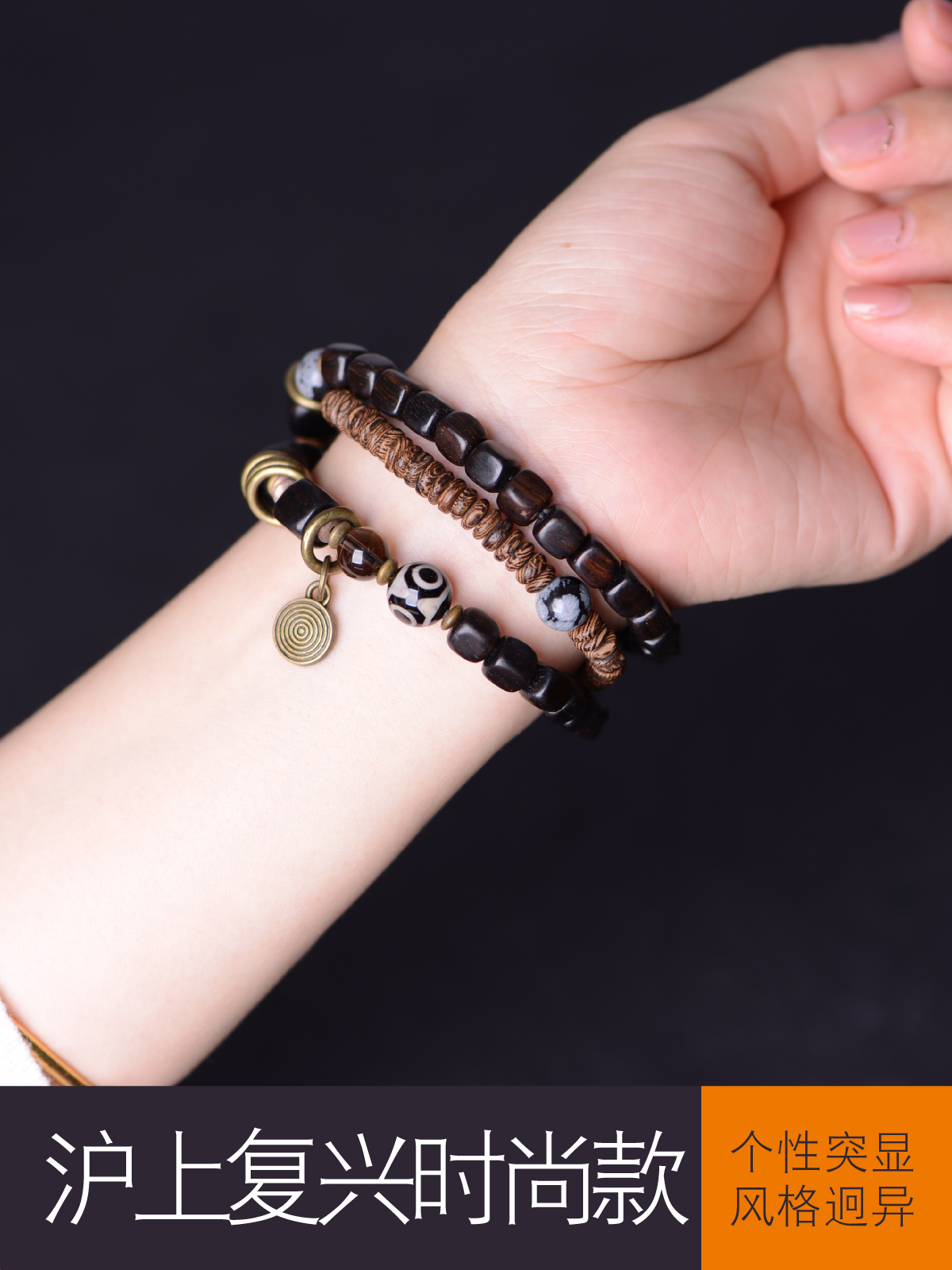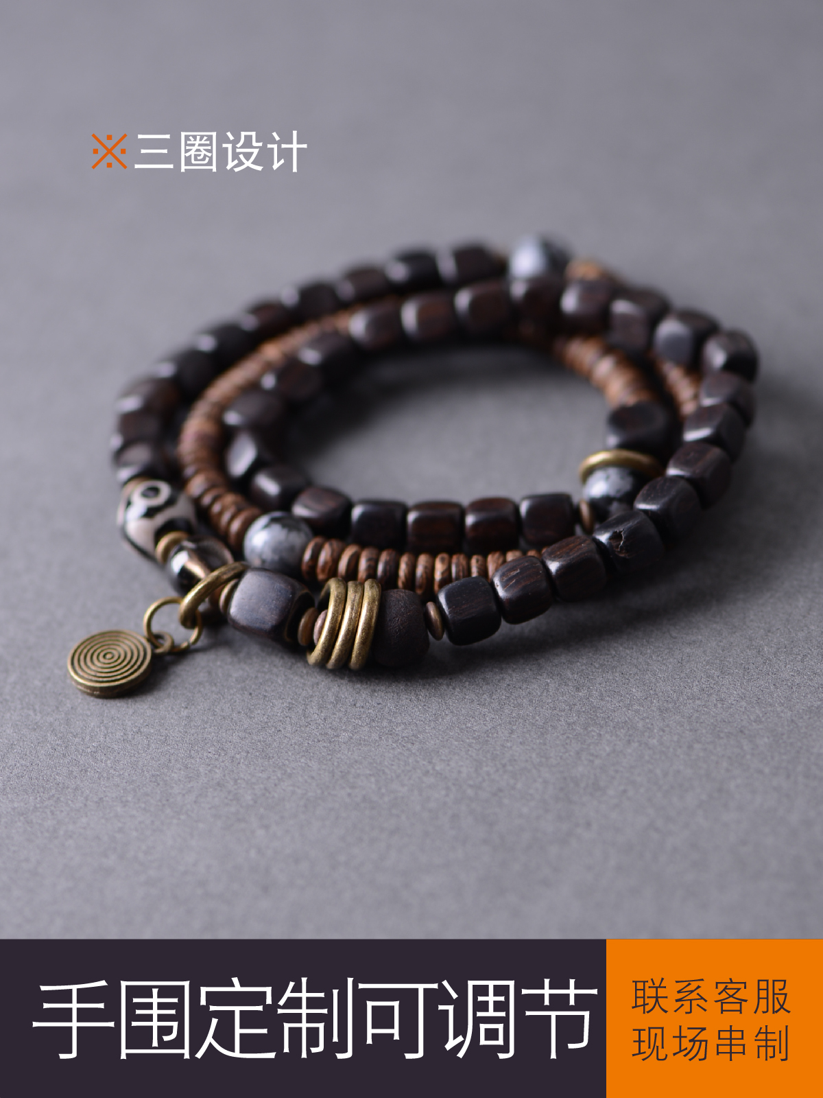 小众黑檀木手串方糖珠手链男女士情侣文玩三圈民族风复古朋克古铜