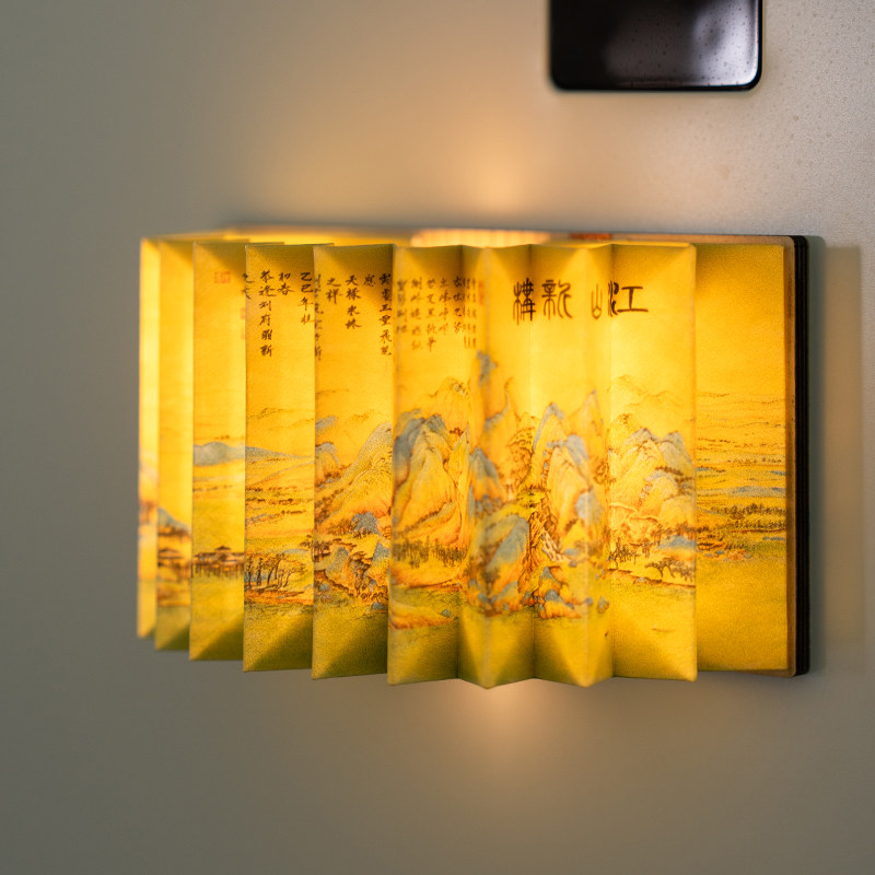 复古千里江山图中国风折纸壁灯客厅卧室装饰灯具冰箱贴装饰摆件品