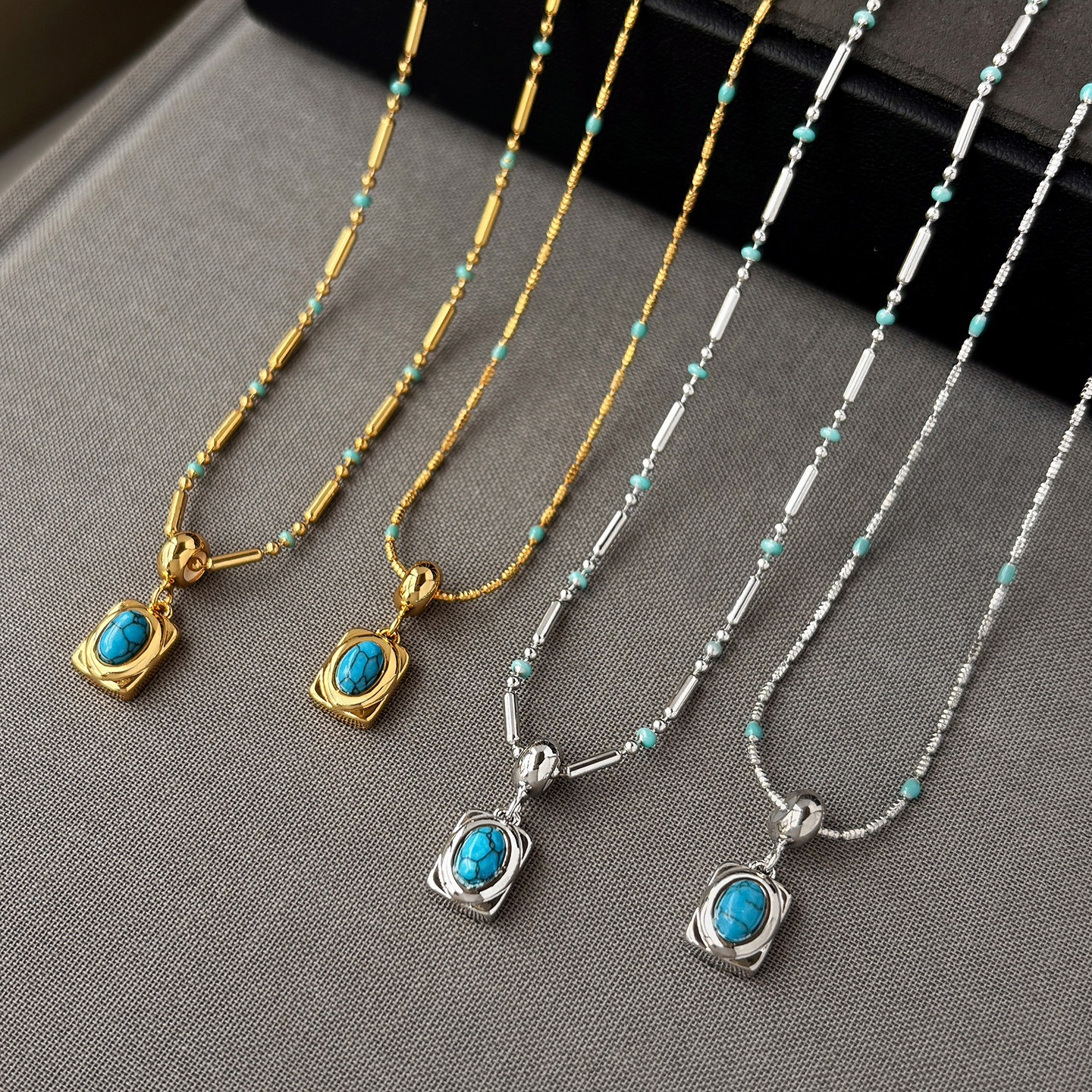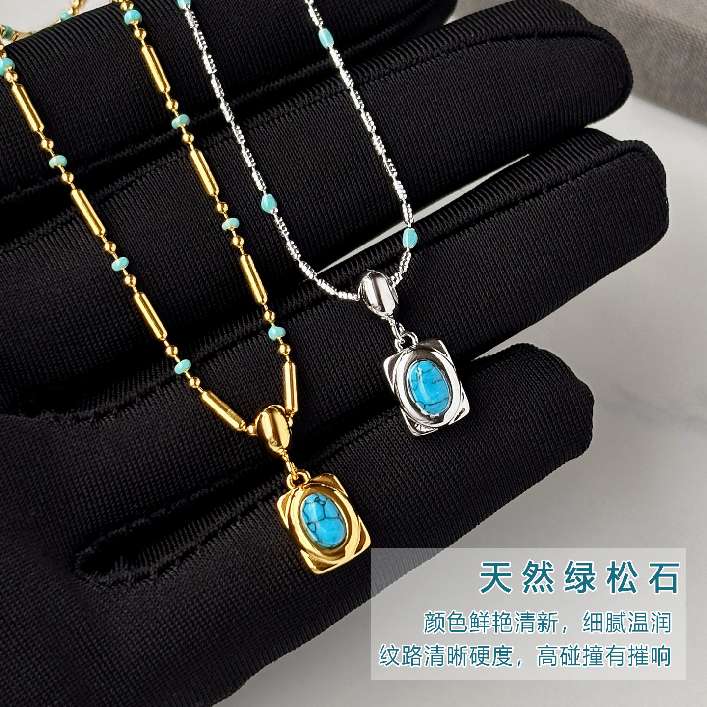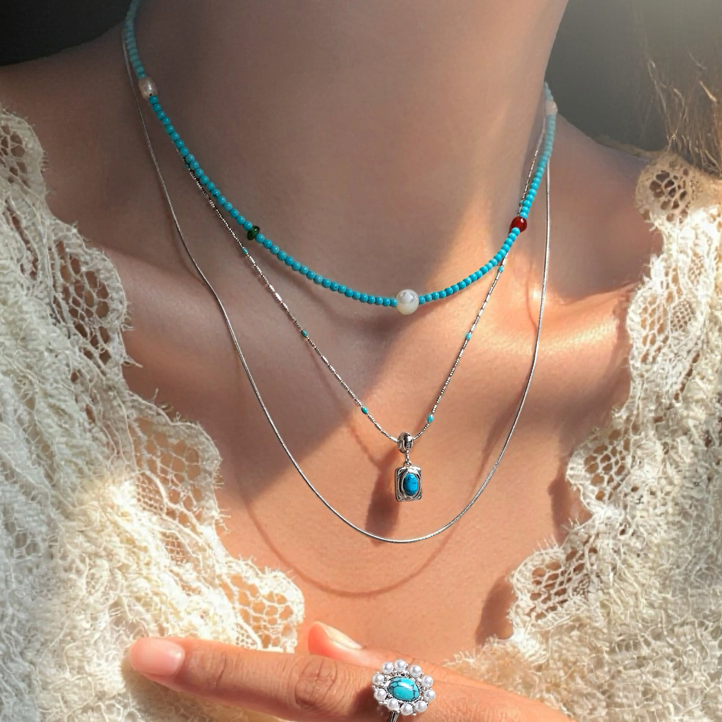 天然淡水珍珠绿松石色叠戴项链女款新中式配饰高级感轻奢锁骨颈链