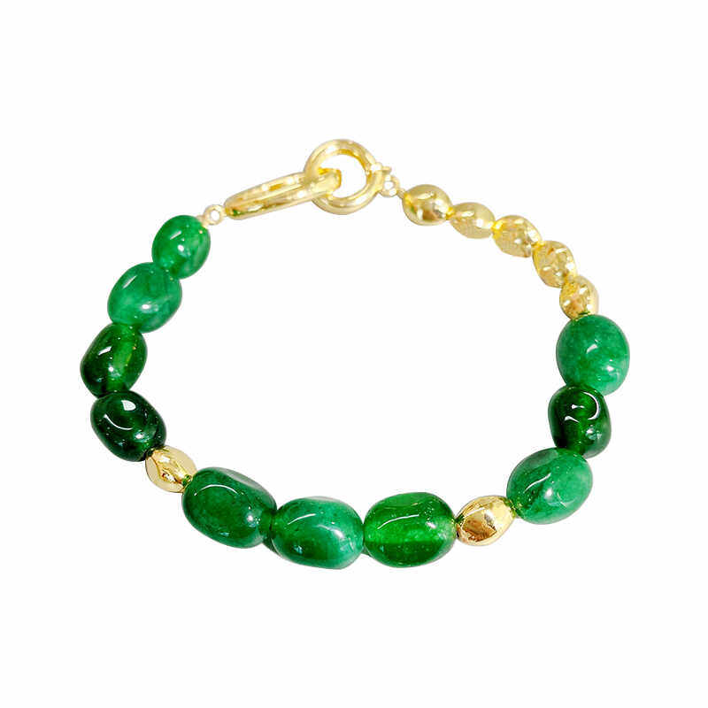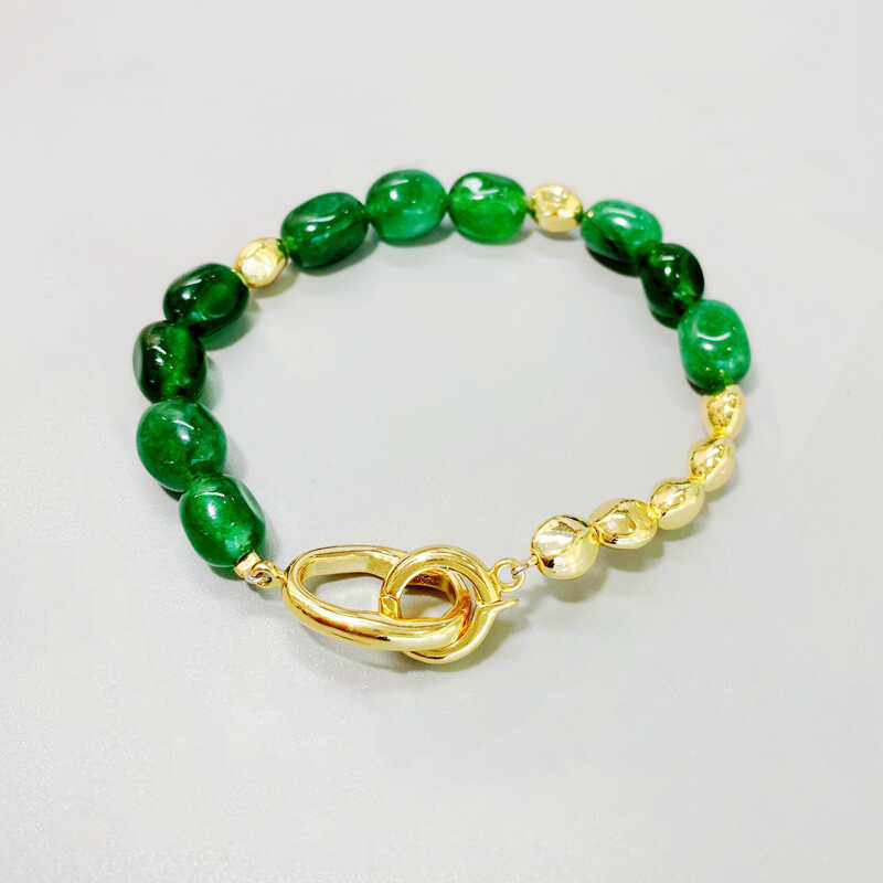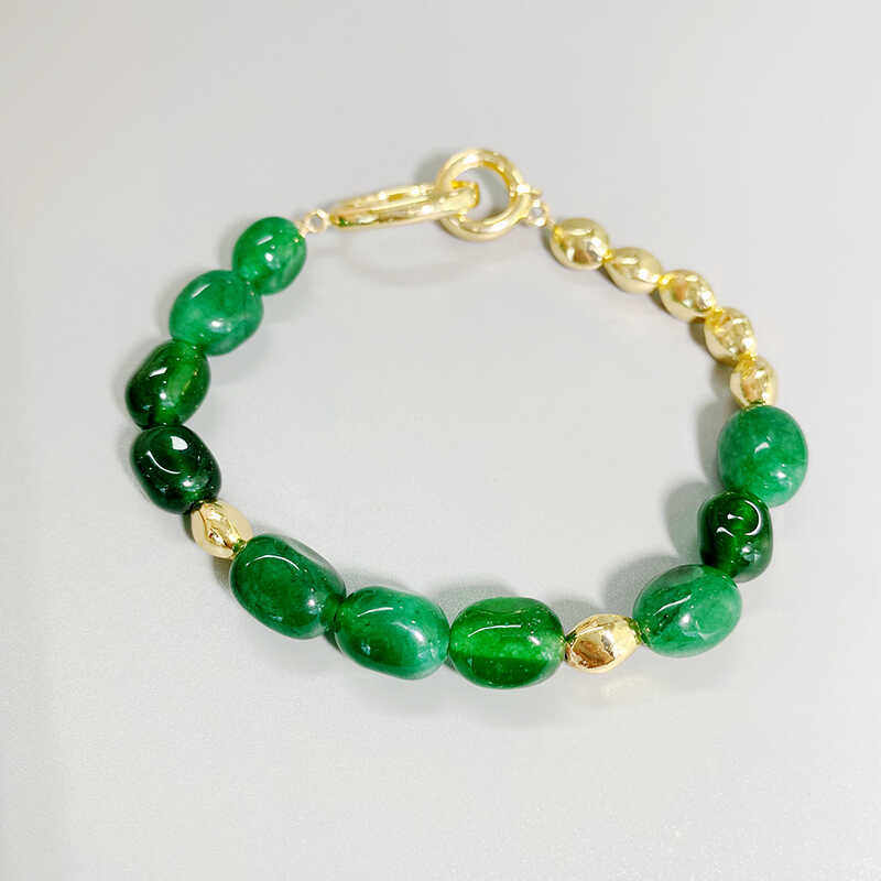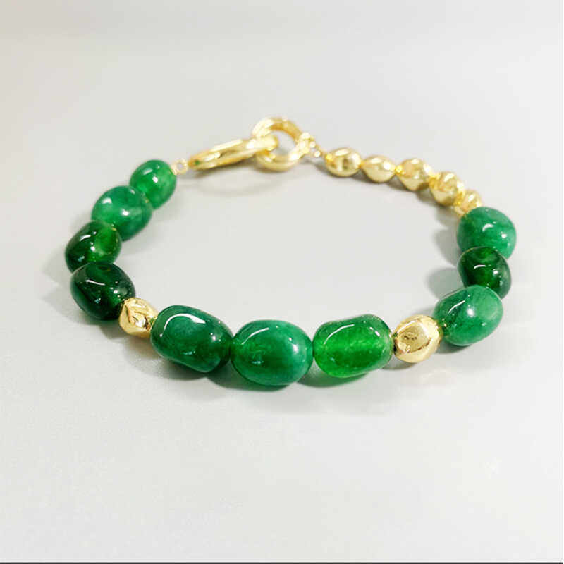 高级14K包金绿玉髓手链女 复古气质高级时尚个性手串小众设计礼物
