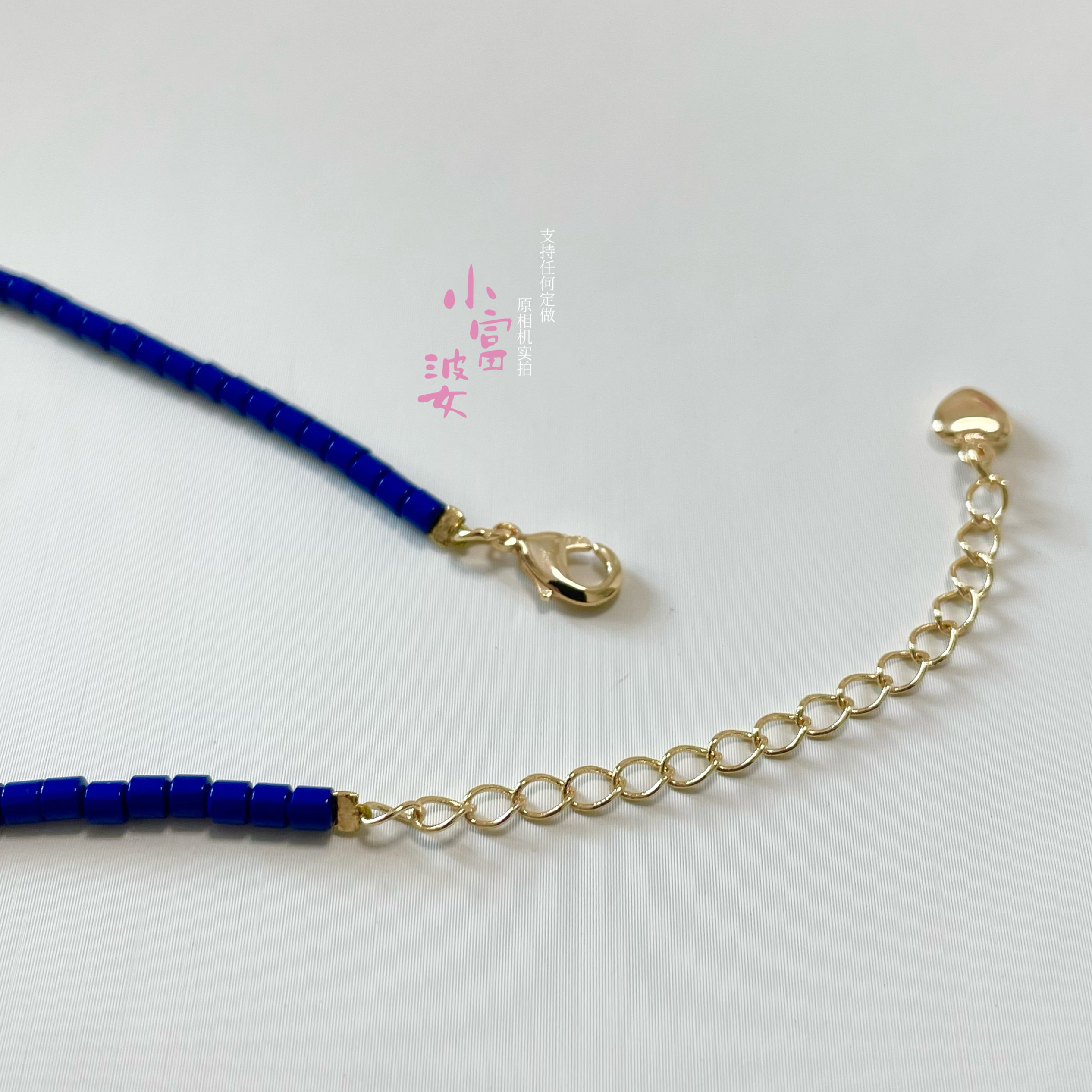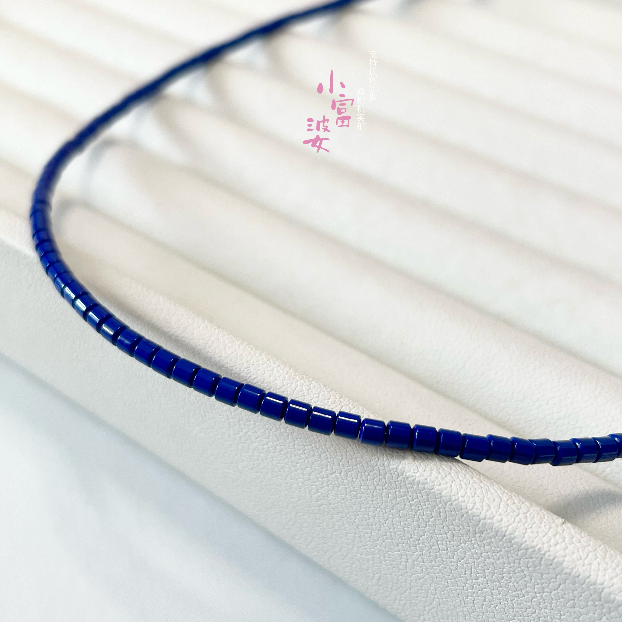 7A级无白无金帝王蓝色锁骨链桶珠直切项链仿青金石蓝矿石串珠链女