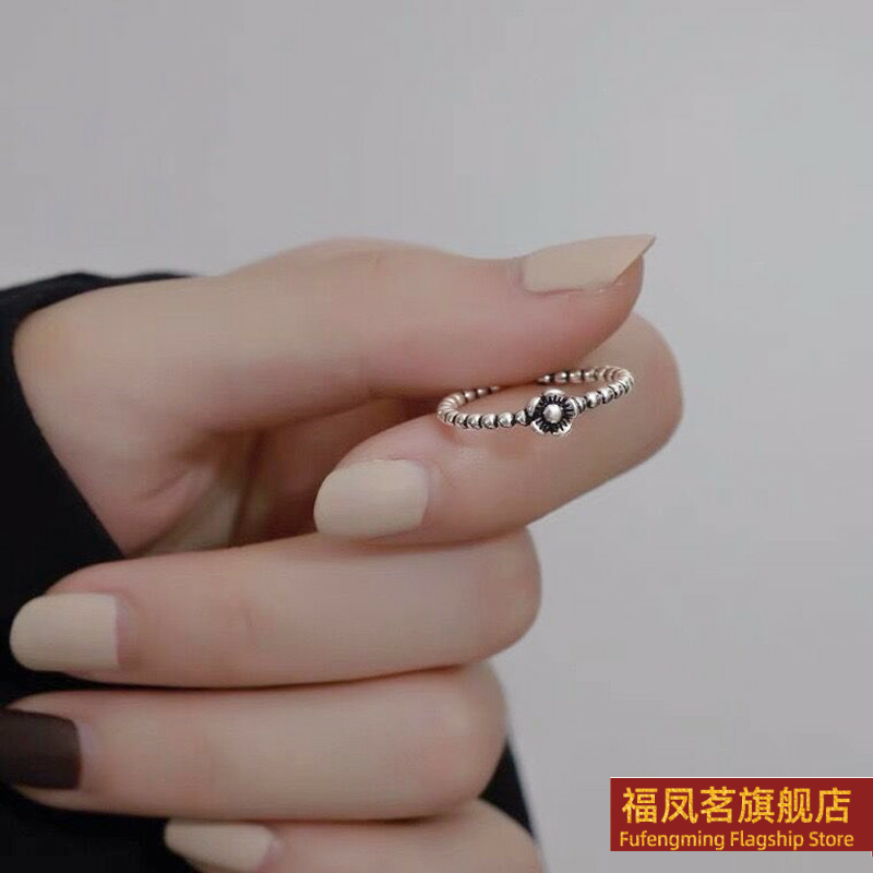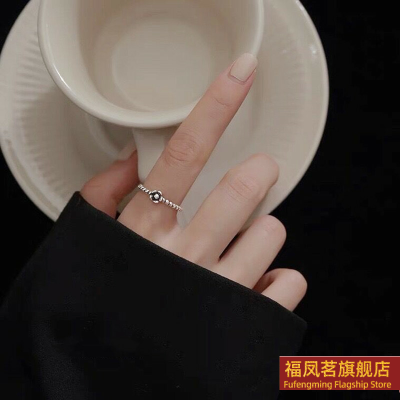 正生新款复古山茶花纯银戒指女小众刻字高级感气质礼物开口指环