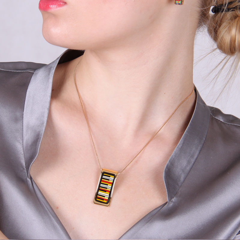 黑皮绳毛衣链项链钢琴键盘景泰蓝珐琅吊坠女时尚个性送女友礼物