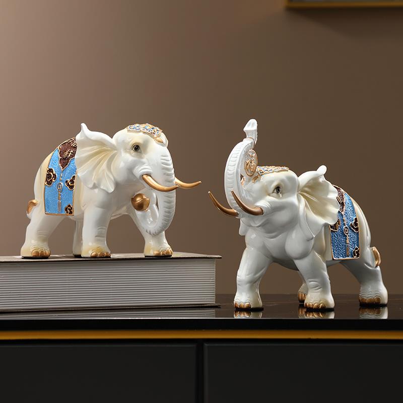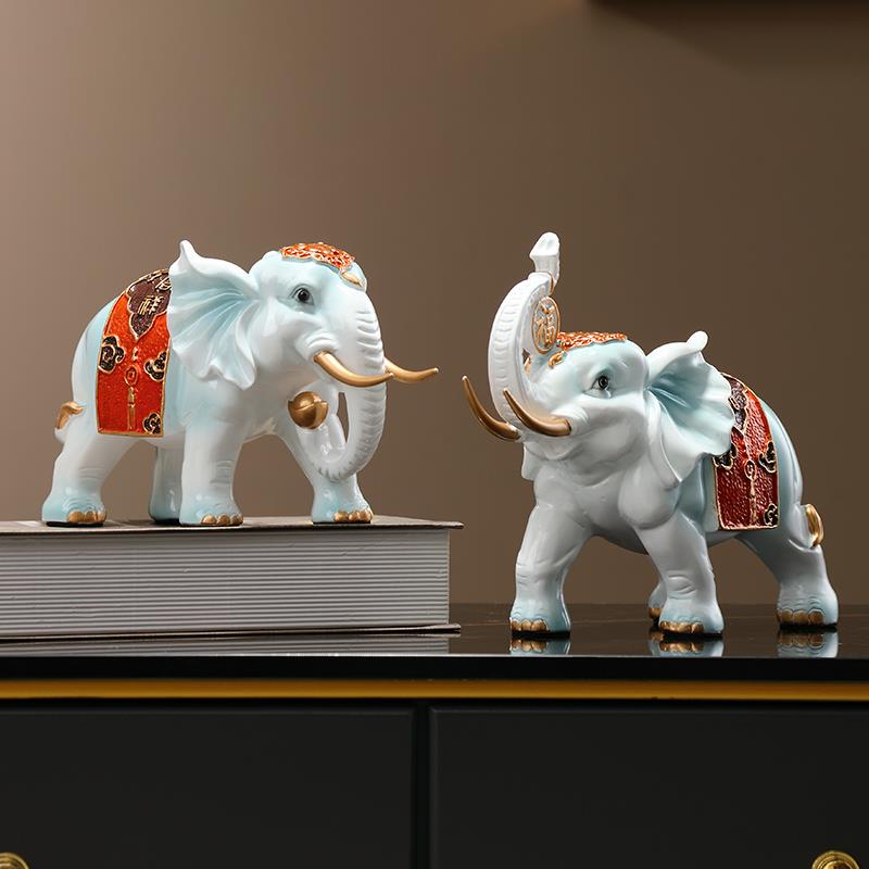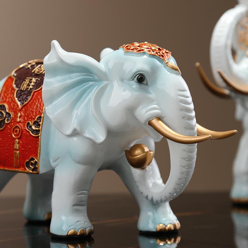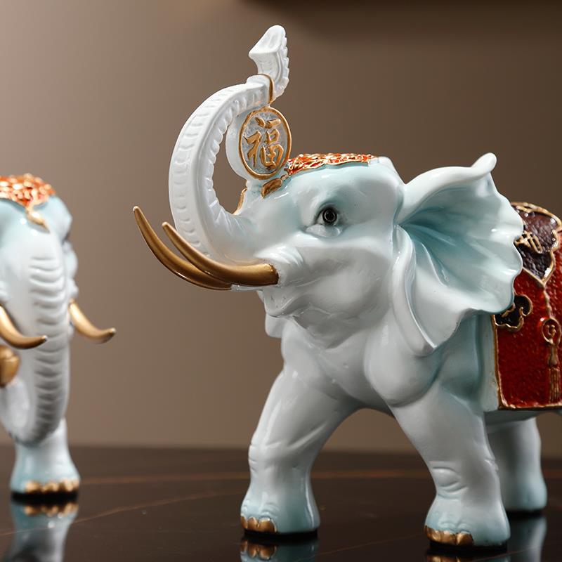 现代吉祥如意招财大象桌面摆件一对客厅电视柜装饰品乔迁新居礼品