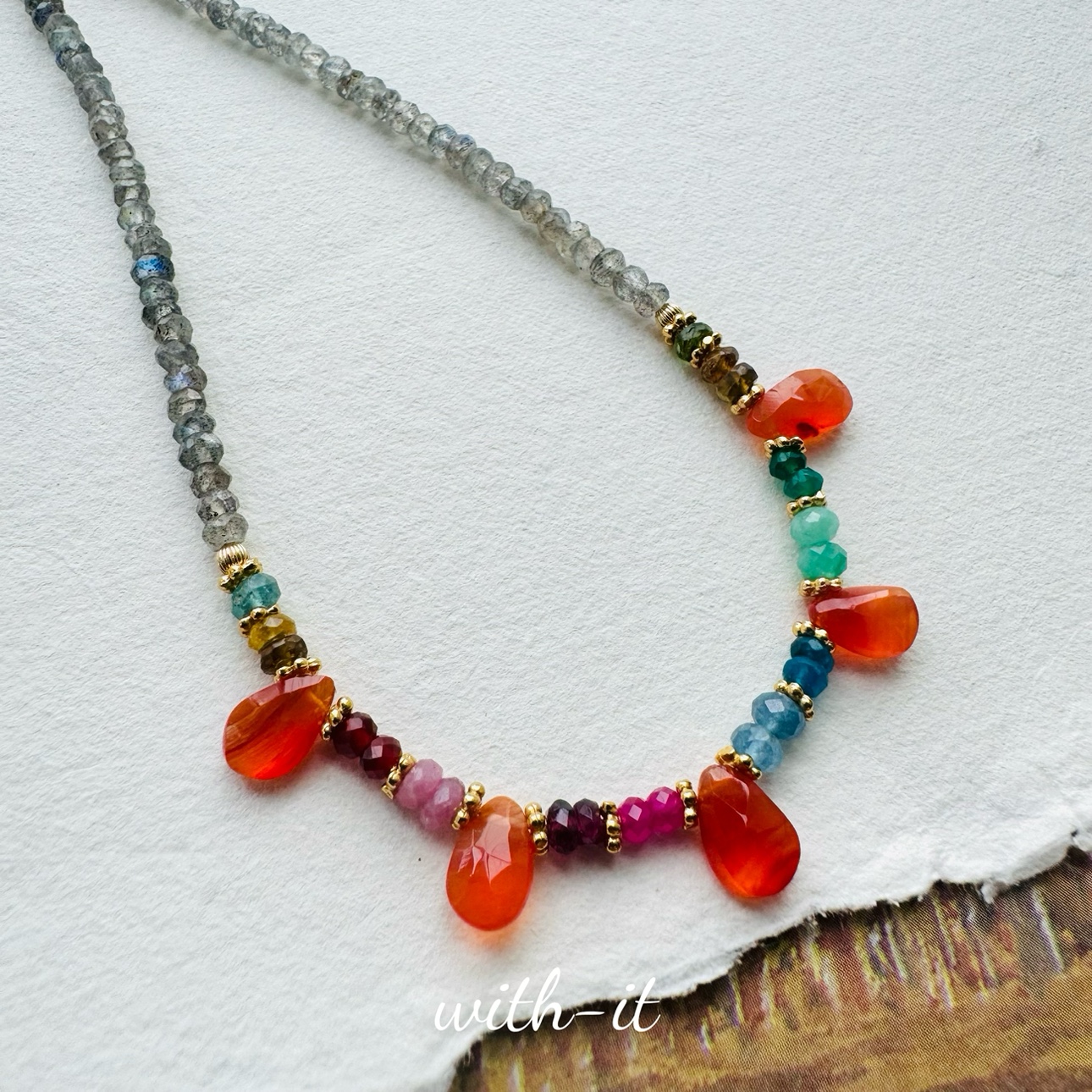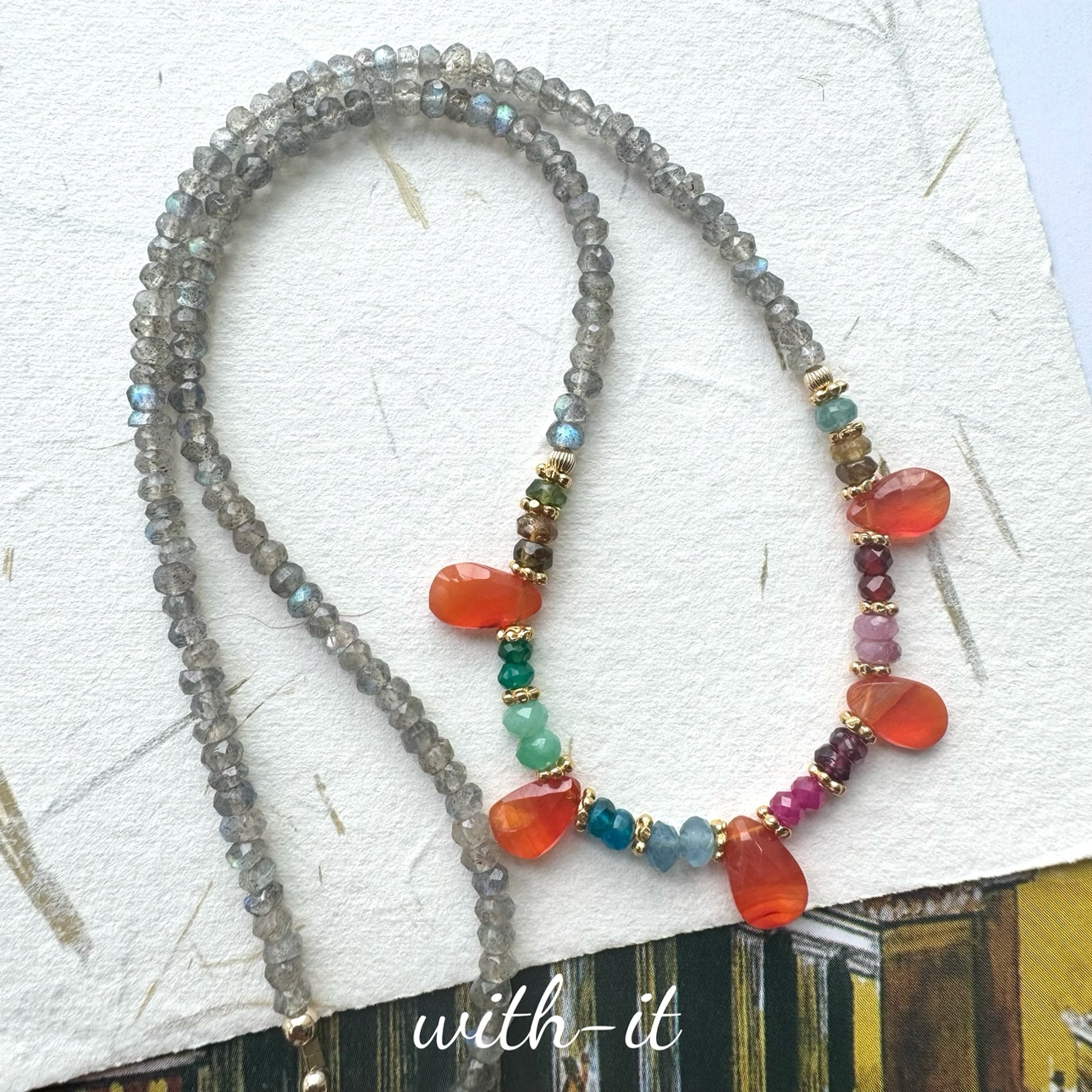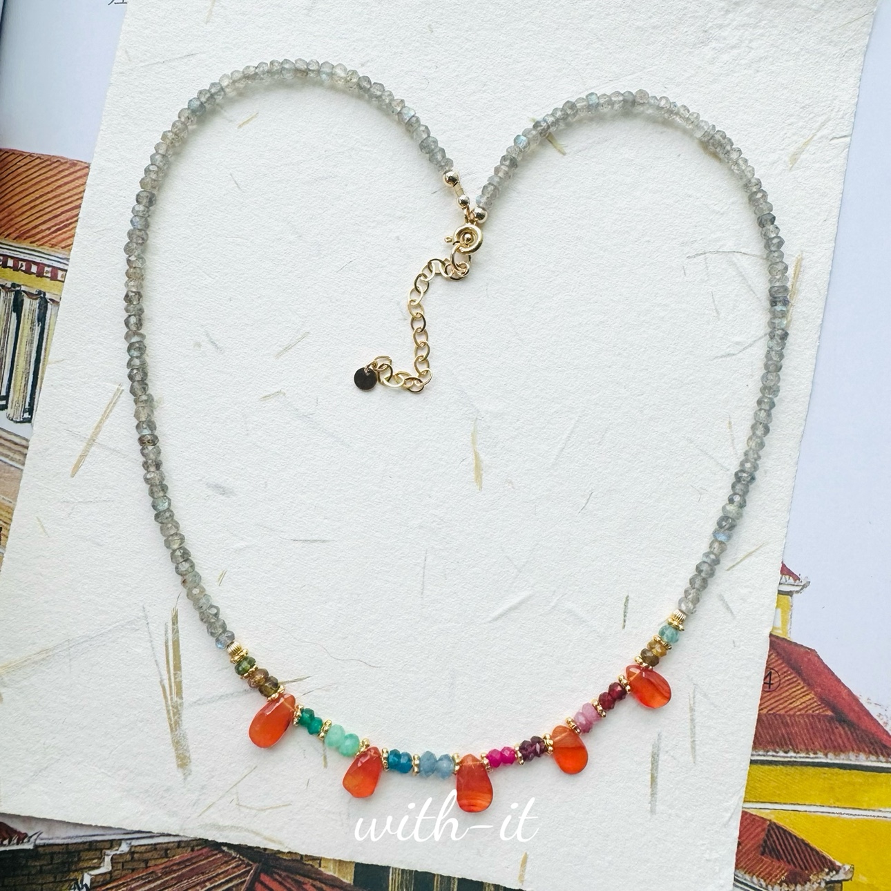with it印度进口拉长石项链水滴橘玛瑙吊坠彩色珠串意大利风199