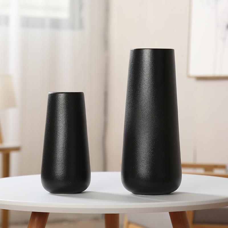 新中式黑色陶瓷花瓶大号客厅电视柜插花摆件简约现代水养鲜花花器