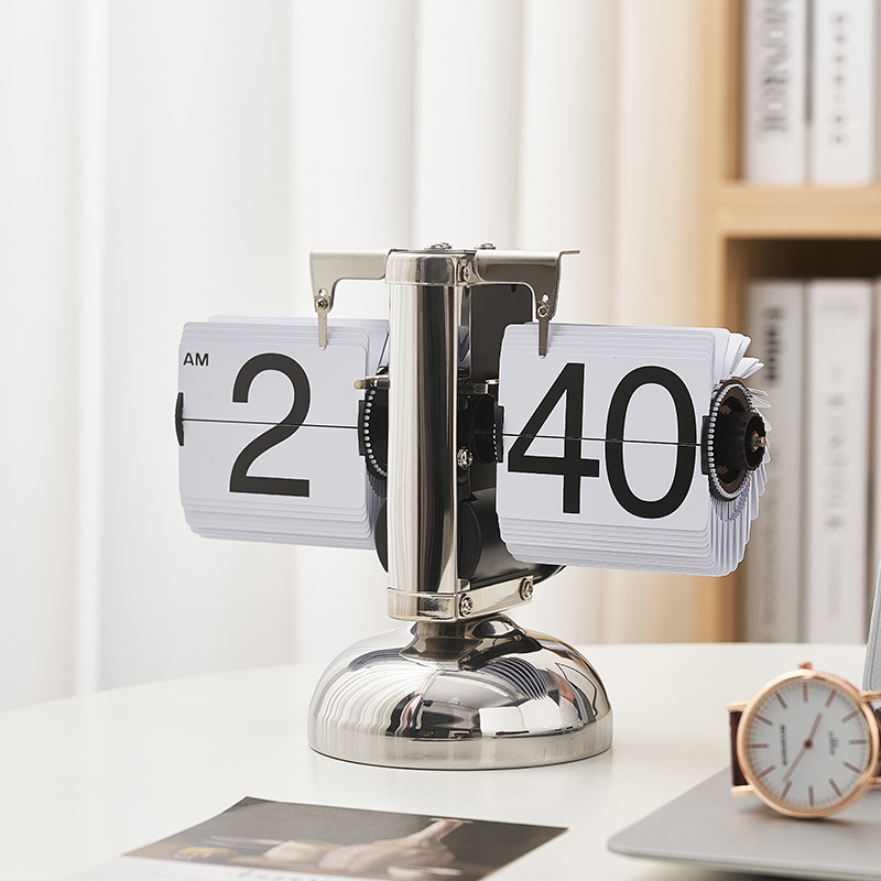创意翻页机械时钟卧室书桌面科技感摆件家居客厅办公室书柜装饰品