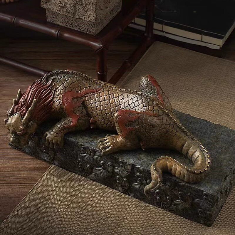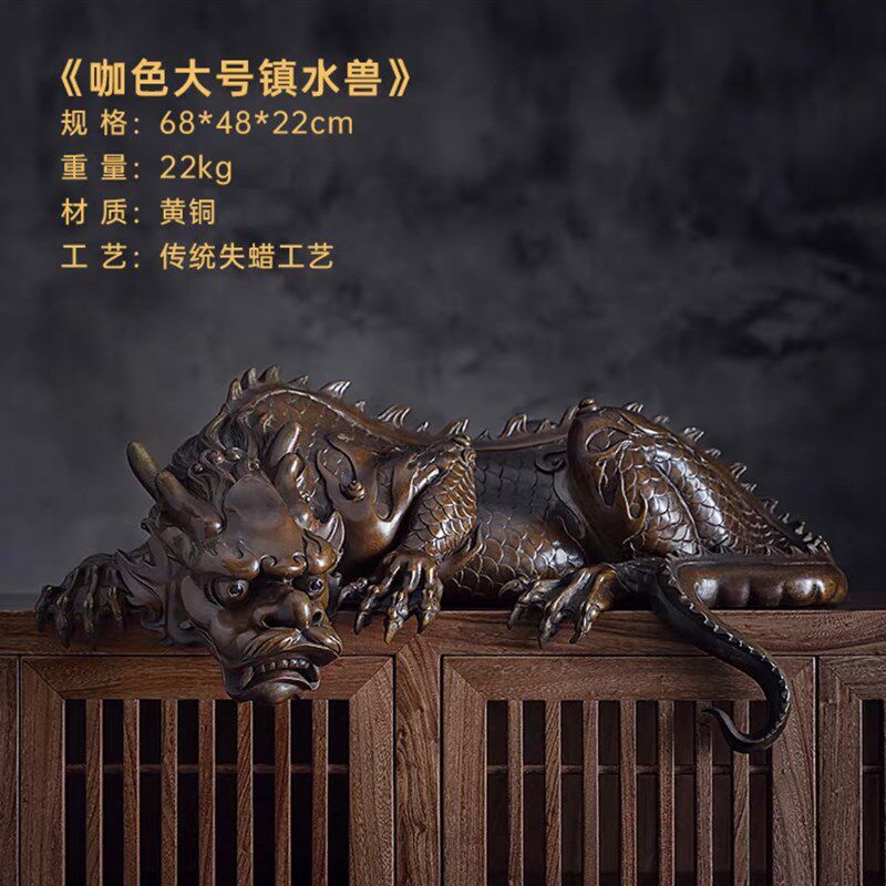 新中式茶宠摆件铜镇水兽龙王蚣蝮水麒麟高档礼品家居办公室装饰品