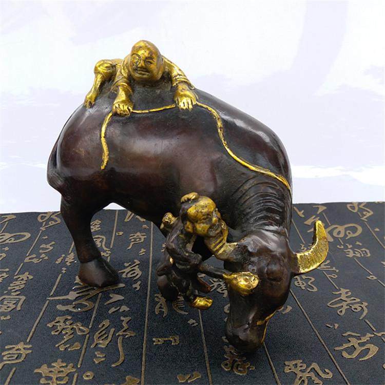 手工黄铜工艺品 童子牛雕塑 金属人物摆件