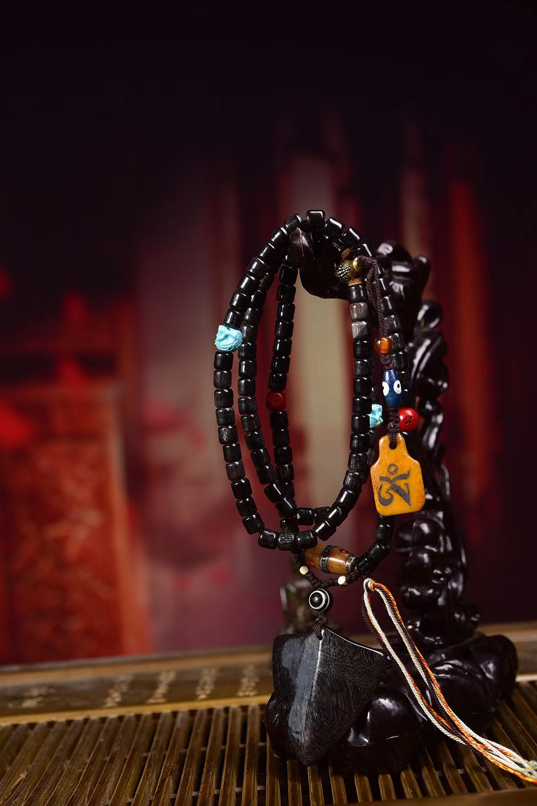 桶珠108颗黑金盾牌老骨银镶嵌天珠松石尸陀林老铜三通料器骰子