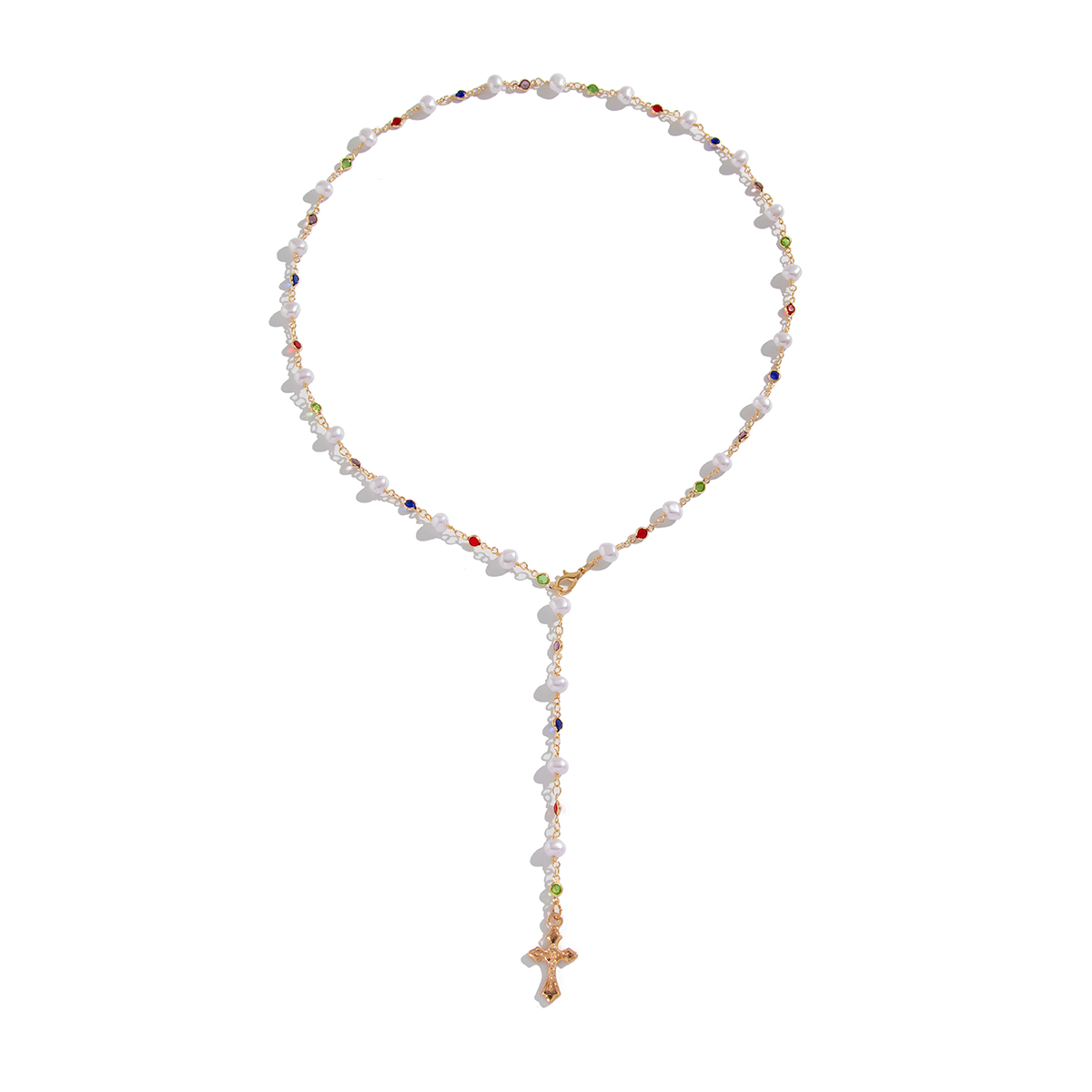 十字架水晶不规则仿珍珠项链女 欧美轻奢时尚百搭网红气质毛衣链