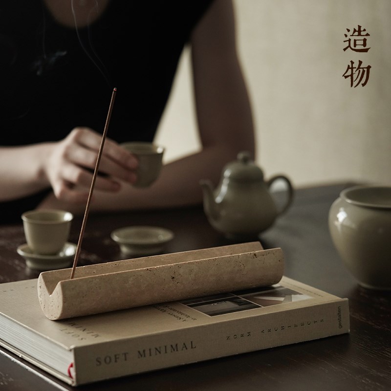 大理石线香香插家用室内复古中式檀香禅意高O级感创意熏香底座托