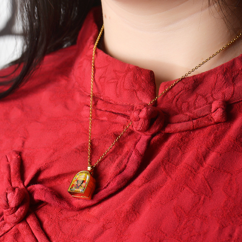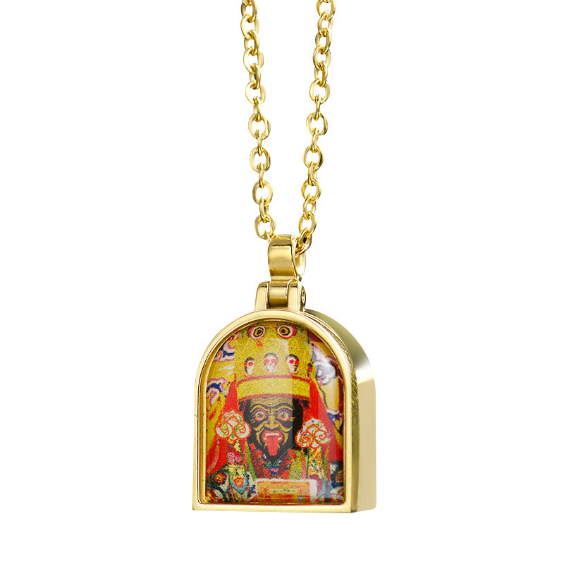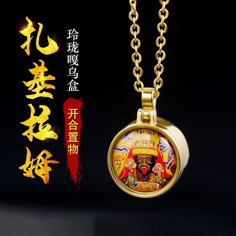 金色嘎乌盒新非遗唐卡扎基拉姆吊坠黄财绿度母图案定制项链钛钢