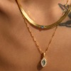 欧美小众设计ins博主款橄榄形马眼锆石满钻粉色绿色蓝色钛钢项链