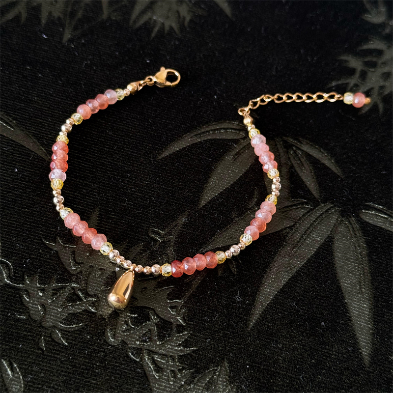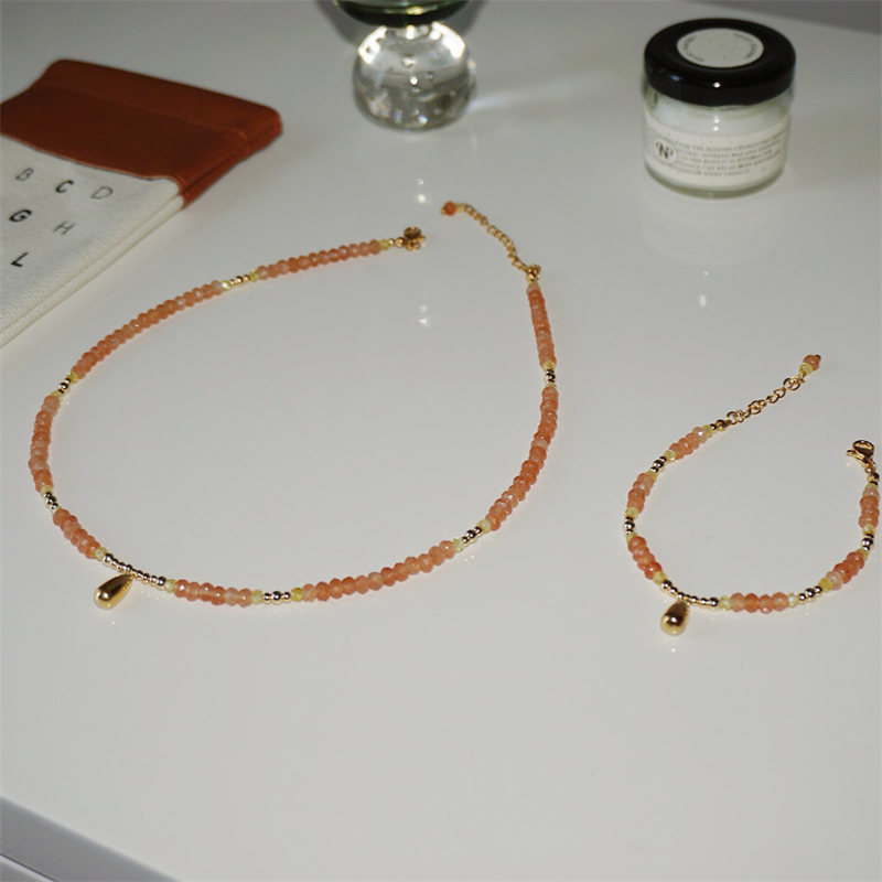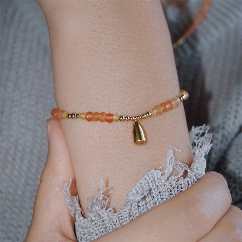 WITH GJ橘子海 原创暖橘色玉髓可爱小水滴不褪色钛钢串珠手链设计