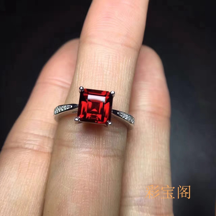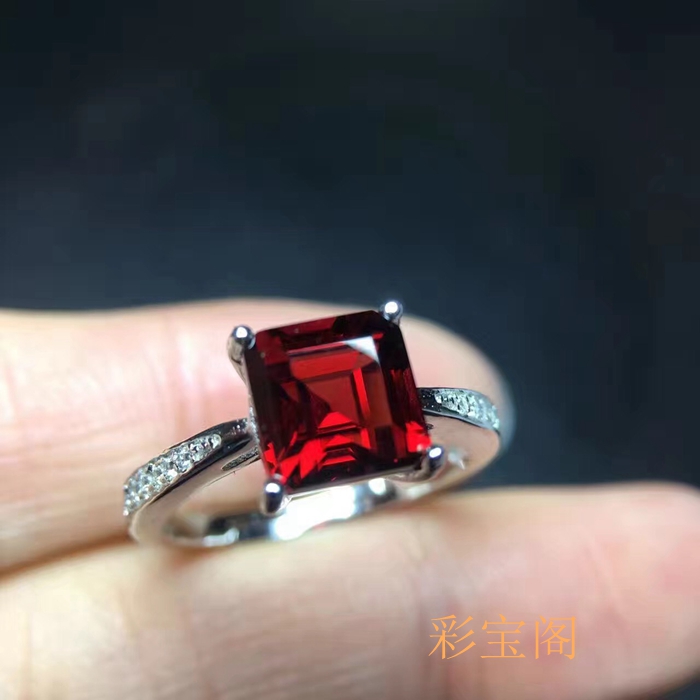 s925银戒指空托 时尚简约 开口设计 代镶石榴石紫晶等 方7 DIY