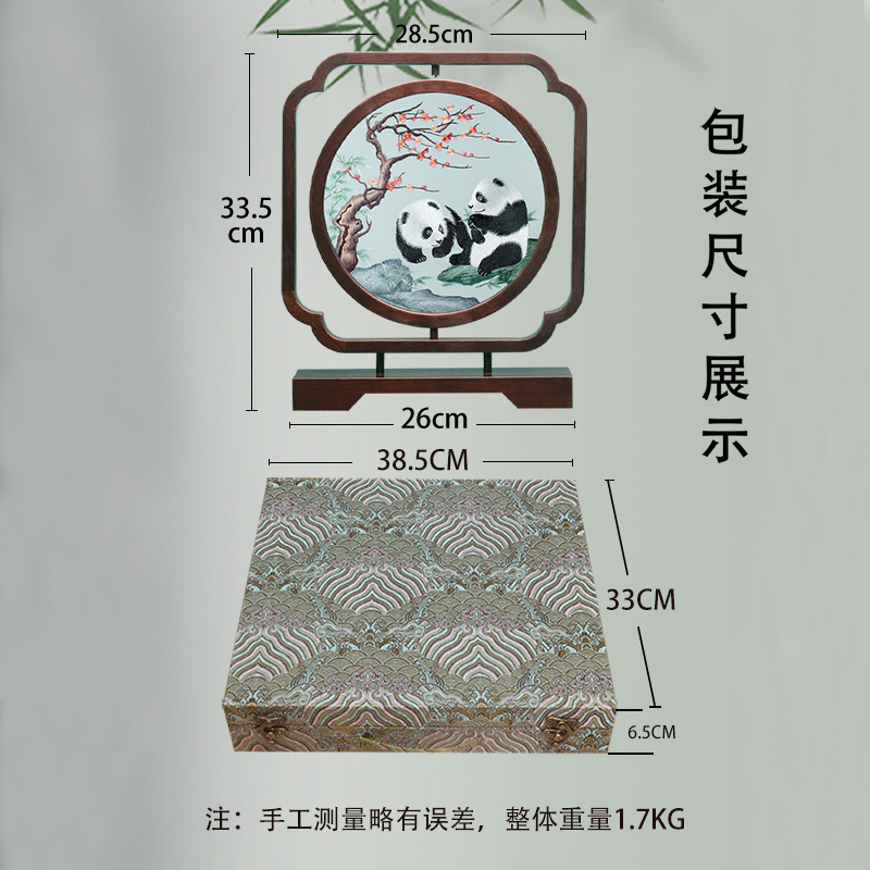 苏绣摆件乔迁手工双面熊猫刺绣摆台送礼中式工艺品外国高端礼品