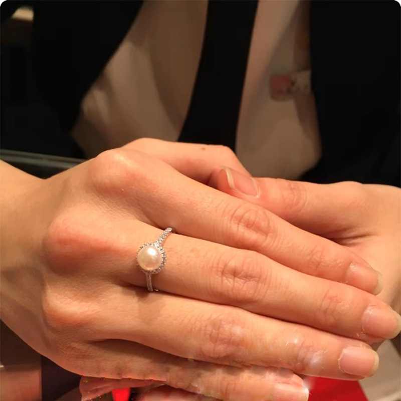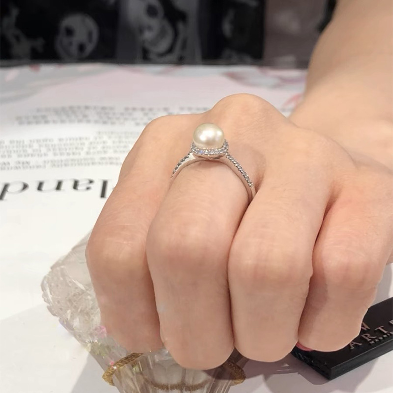 轻奢优雅淡水珍珠戒指女开口可调节太阳花简约小巧珍珠食指戒高级