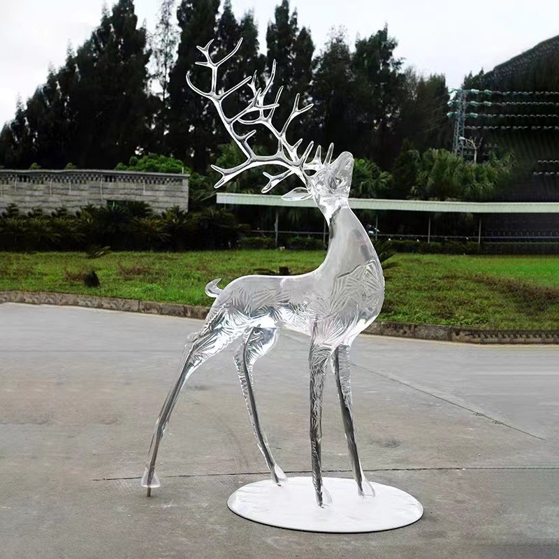 现代简约户外草坪仿真透明树脂雕塑麋鹿大型落地摆件装饰工艺品