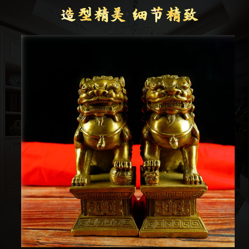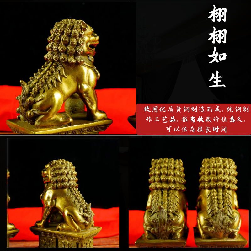 精工纯铜狮子摆件黄铜狮子一对摆件宫门狮家居门口创意装饰摆设