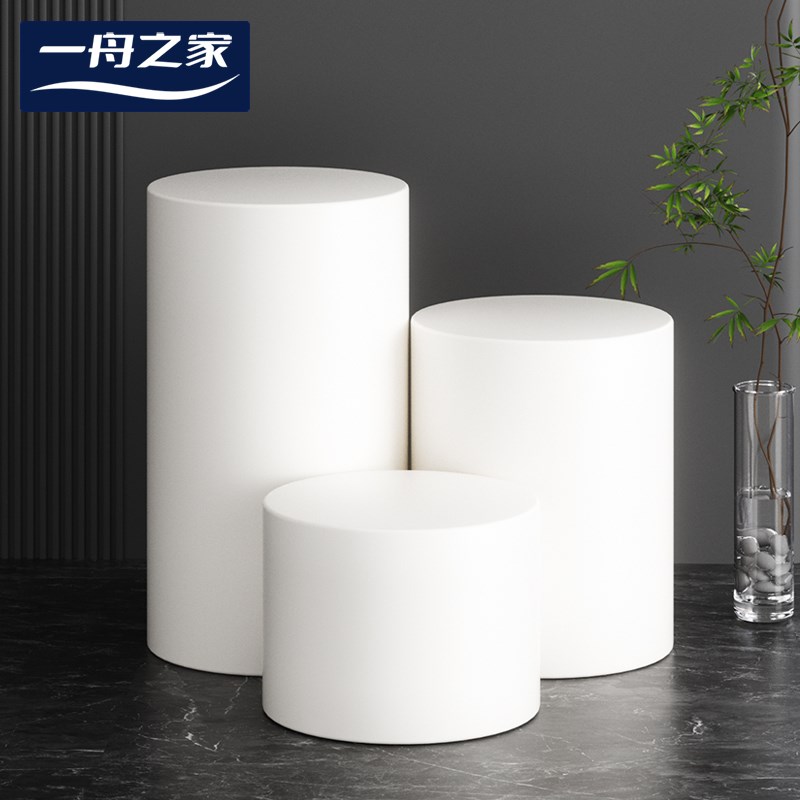 展示台模特圆形柱墩子橱窗摆台白色木质地台高低展台架柜装饰