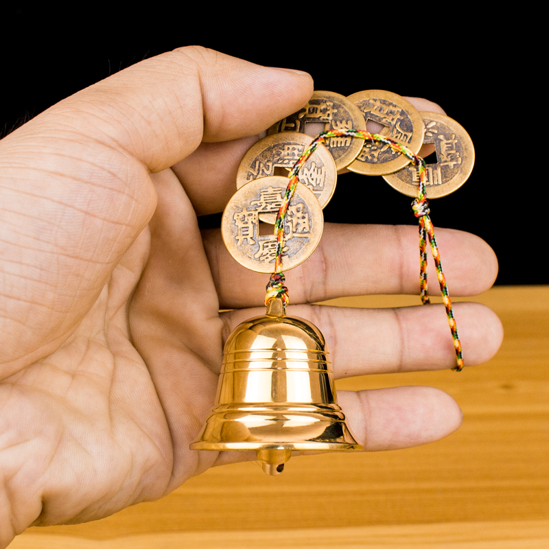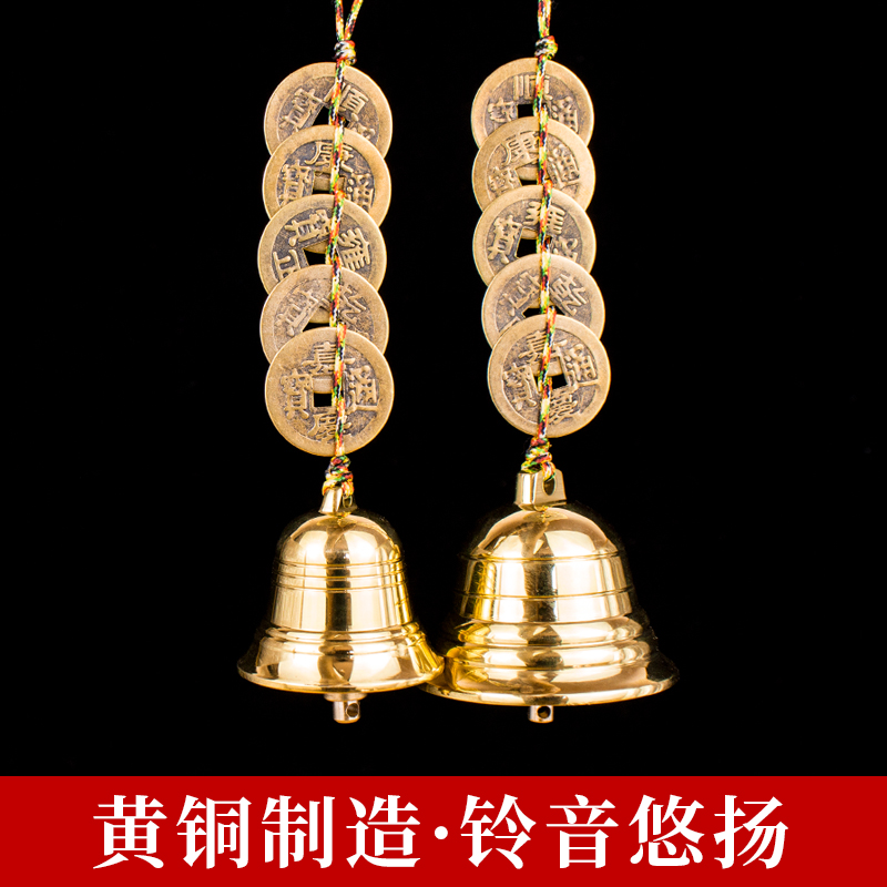 铜铃铛五帝钱六帝钱五彩绳铜风铃铜钟挂饰挂坠黄铜铃铛挂件装饰品