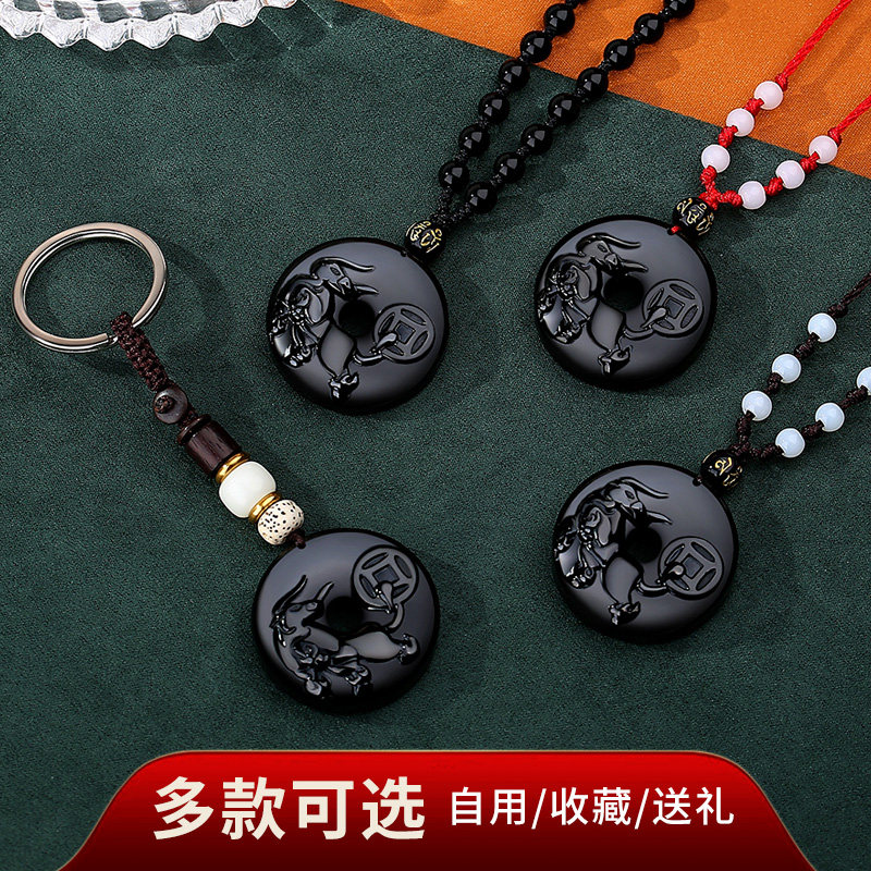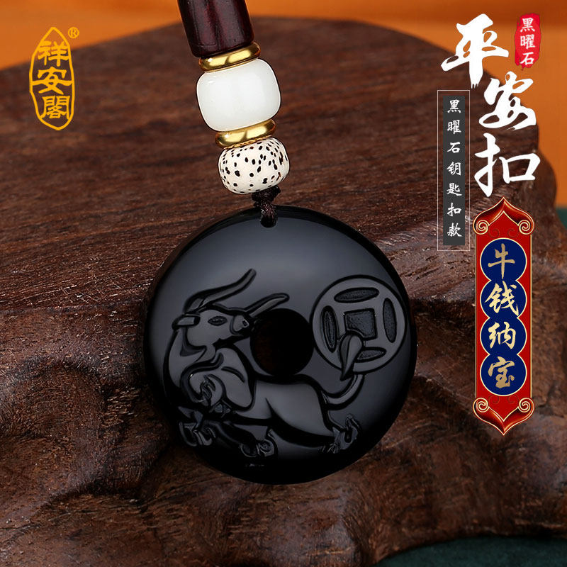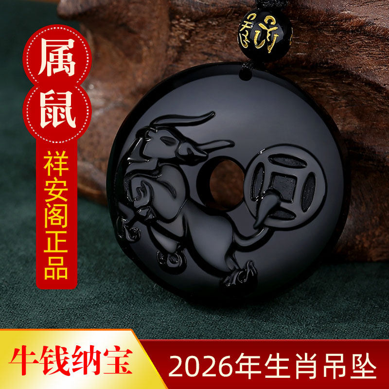 祥安阁牛钱纳宝吊坠黑曜石属鼠人2026年吉祥物男女生肖鼠佩戴挂件