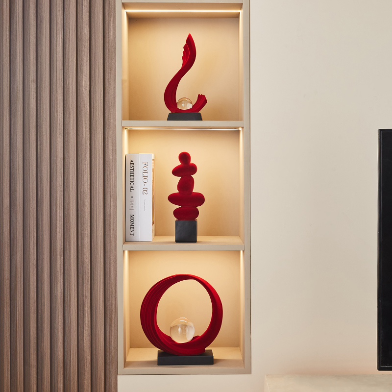 时来运转摆件玄关客厅电视柜酒柜装饰品轻奢高档现代简约红色软装