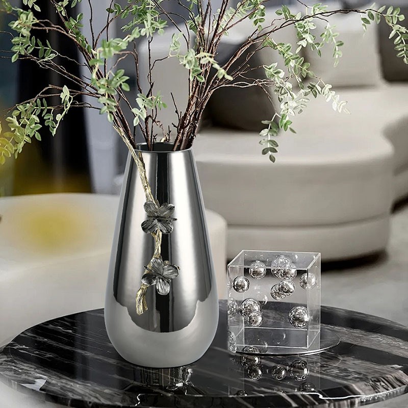 现代简约金属电镀银花瓶不锈钢托盘果盘摆件餐P厅桌面样板房装饰