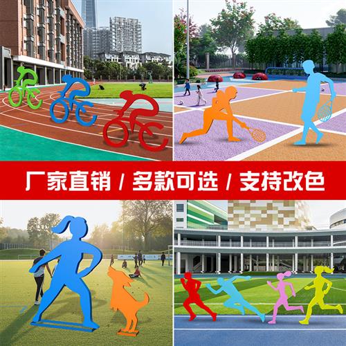 铁艺运动剪影人不锈钢骑自行车镀锌板雕塑学校体育馆广场户外摆件