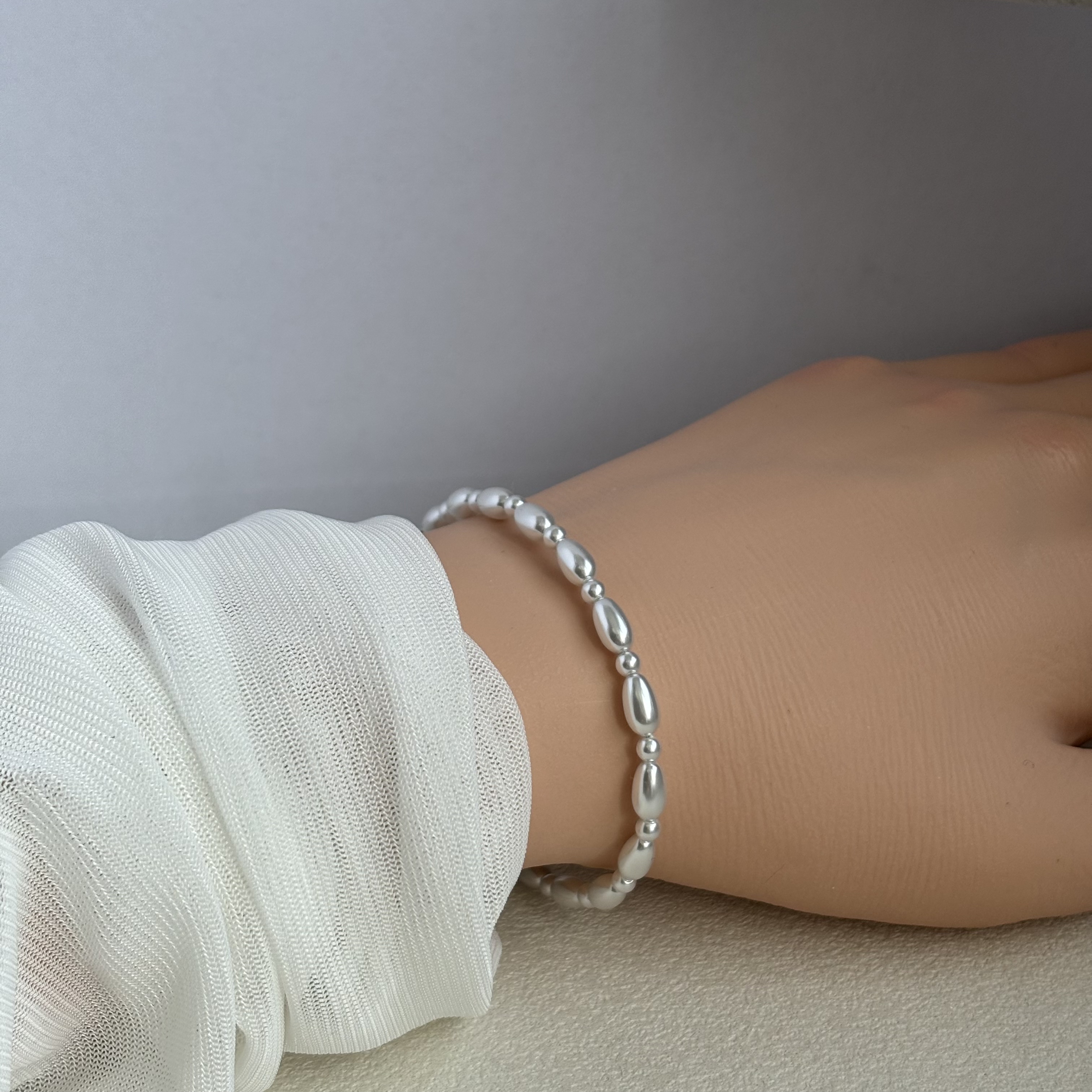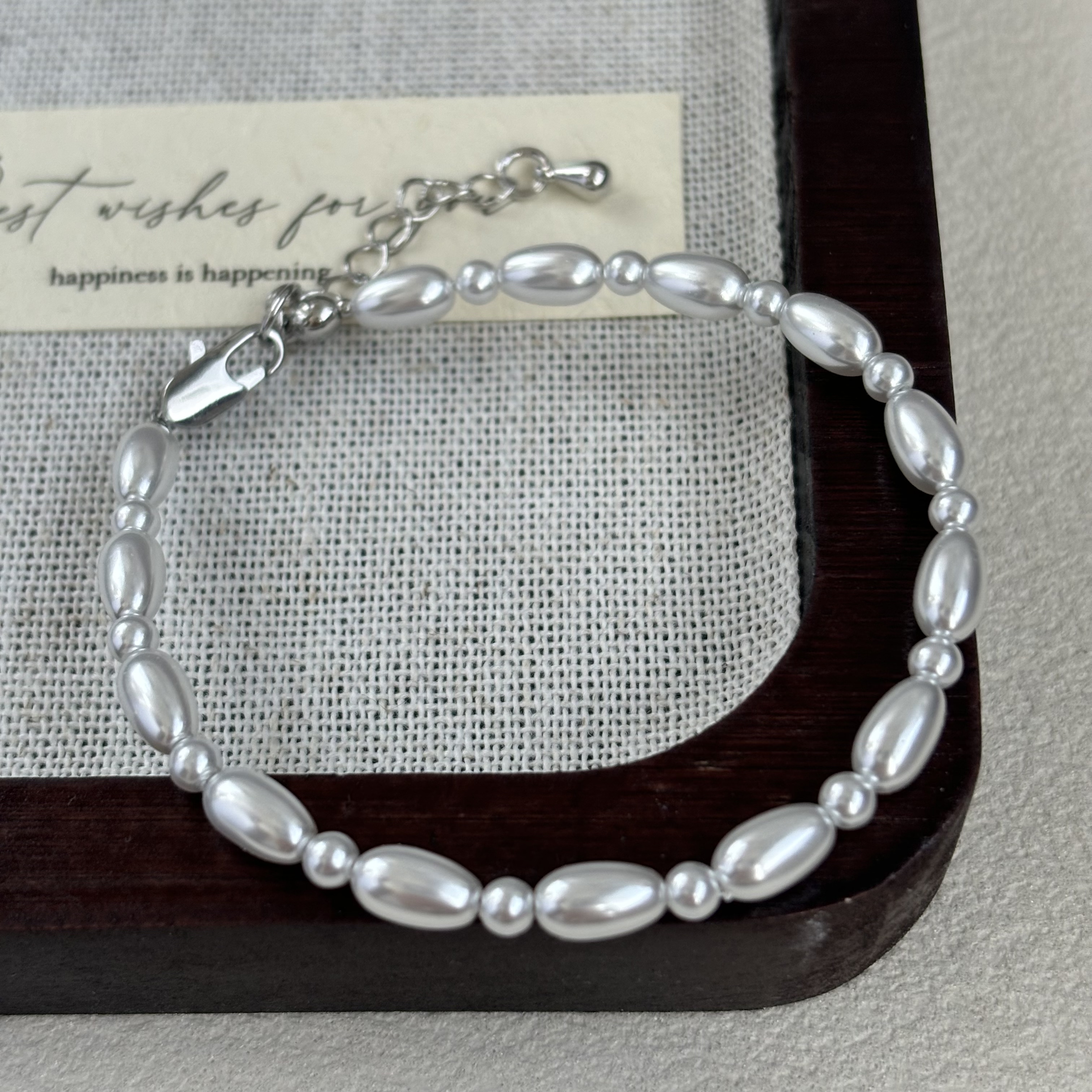 AYOUNG 冷白色米粒珠珍珠手链 小众设计感通勤百搭延长链气质手饰