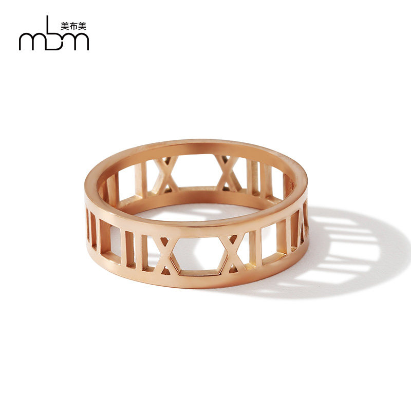 日韩网红个性钛钢镀18K玫瑰金色情侣对戒男镂空罗马数字戒指女