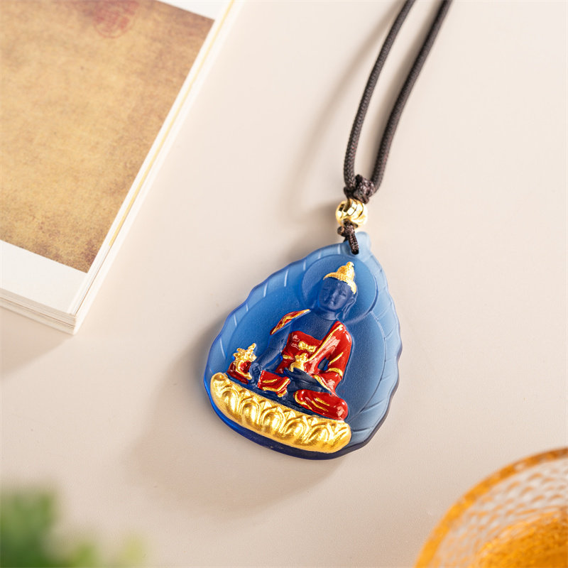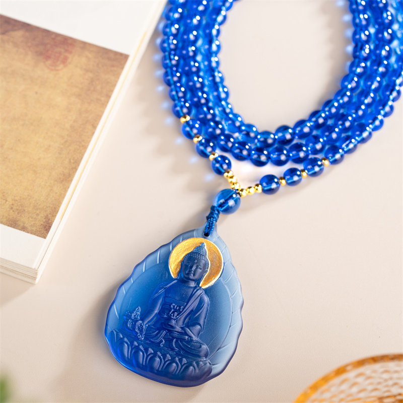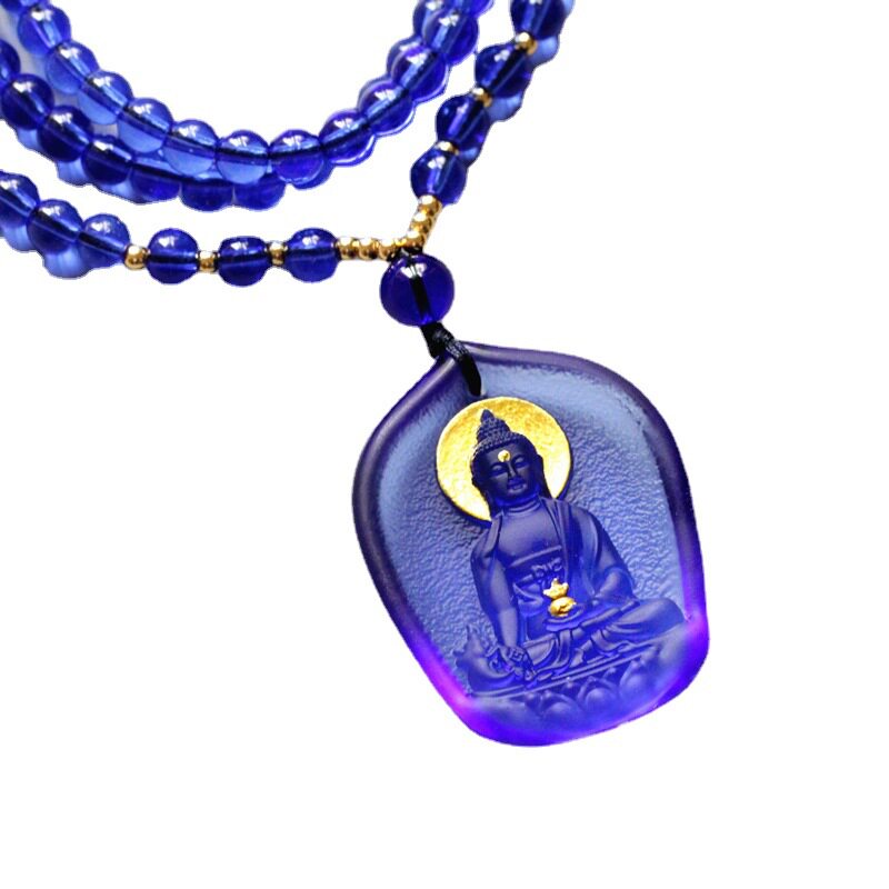 药师佛吊坠有开广蓝色琉璃108颗佛珠项链南无药师琉璃光如来吊坠