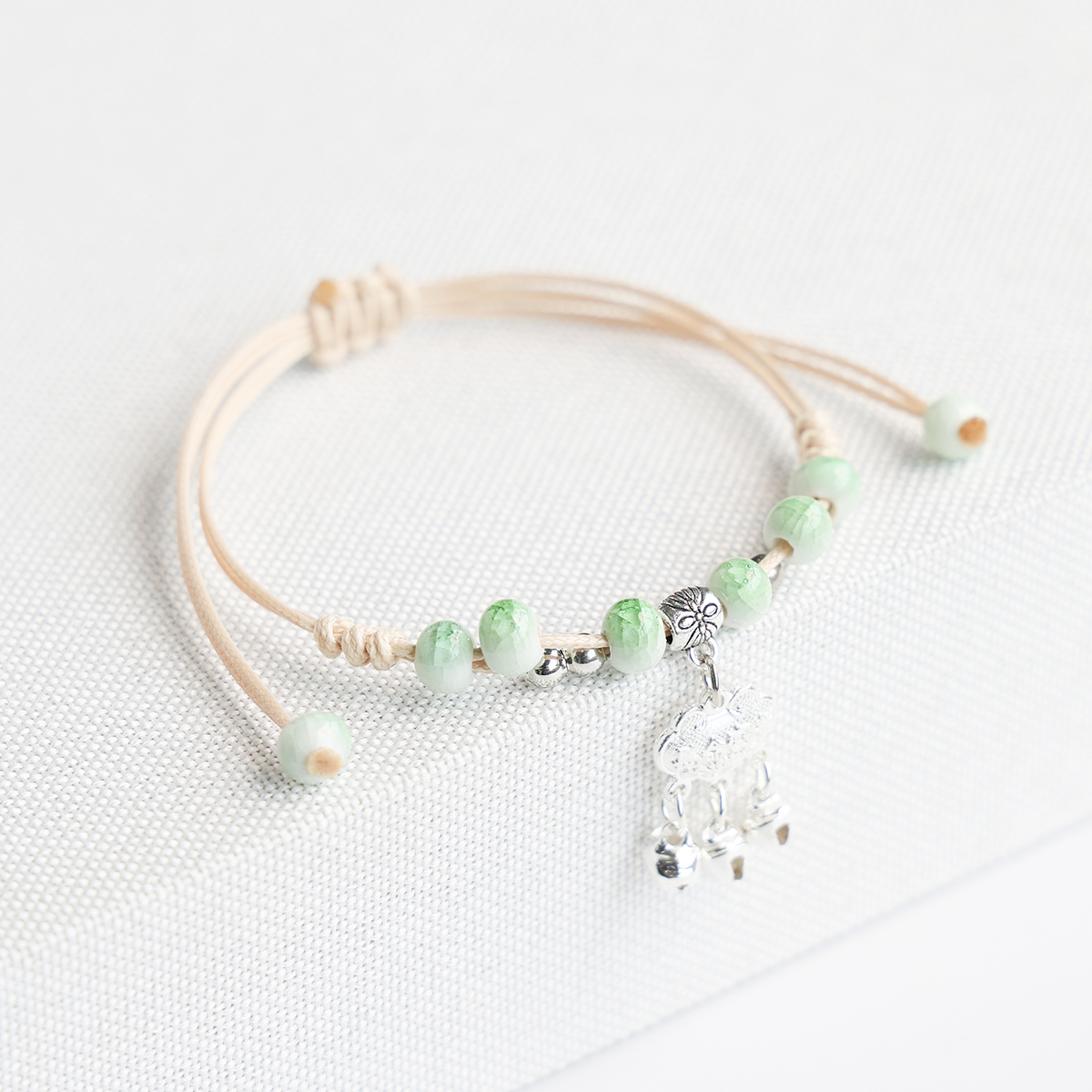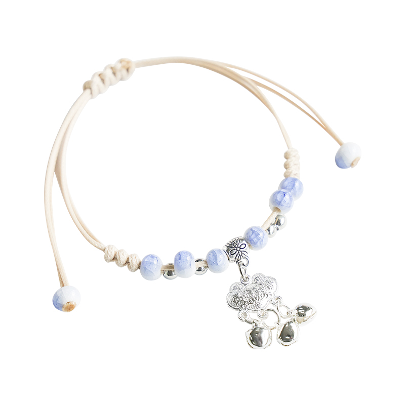 新中式平安锁铃铛手链景德镇瓷珠编织陶瓷手串民族风学生夜市手绳