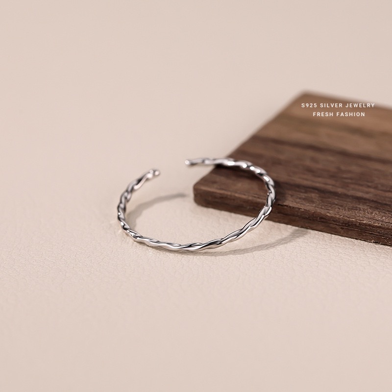 s925纯银麻花素圈银戒指女轻奢高级感极简风开口细食指戒叠戴指环
